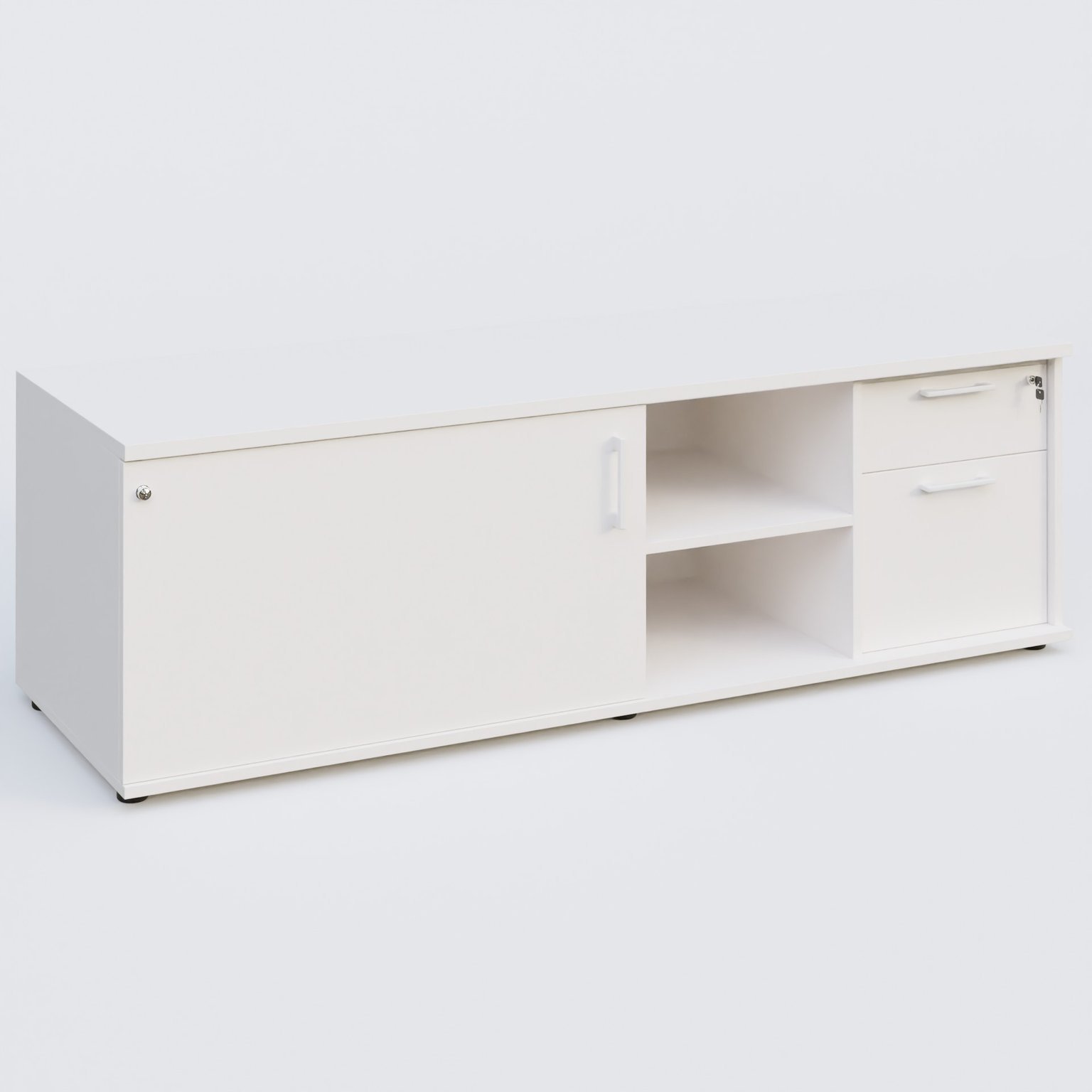 Caisson USE ME avec caisson deux tiroirs, porte à gauche. Hauteur 57 cm, profondeur 62 cm et largeur 180 cm.