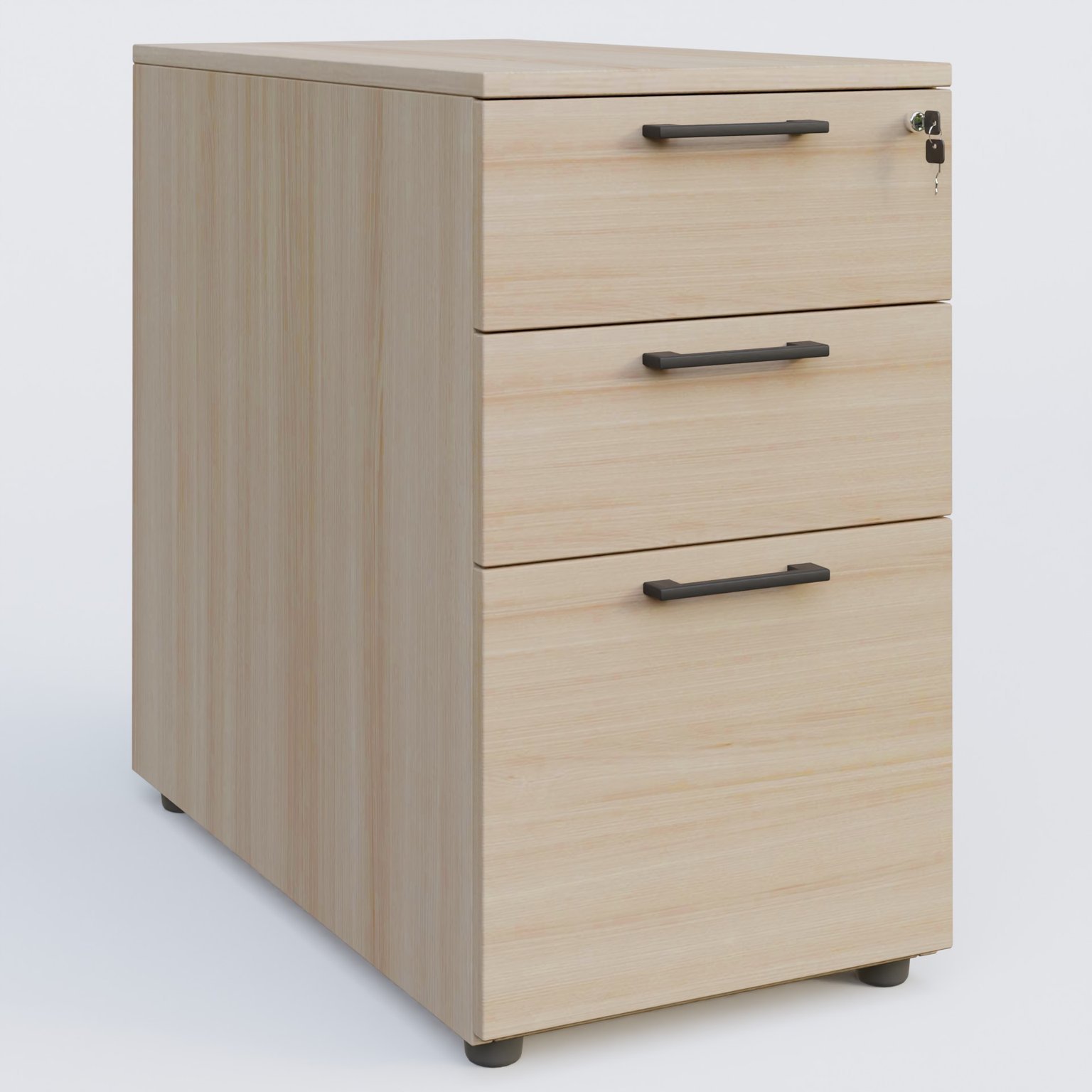 Caisson hauteur de bureau mélamine 3 tiroirs, profondeur 80cm. Caisson Acacia et poignets Noir.