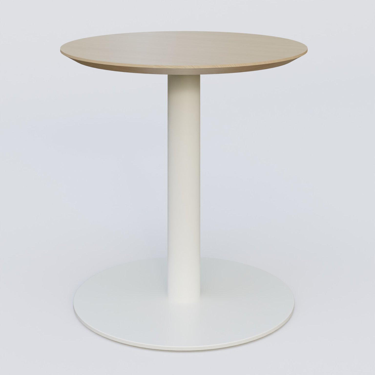Table Basse Fashion Styl piètement colonne en métal et plateau bois. Plateau Chêne et pietement Blanc (RAL 9010).