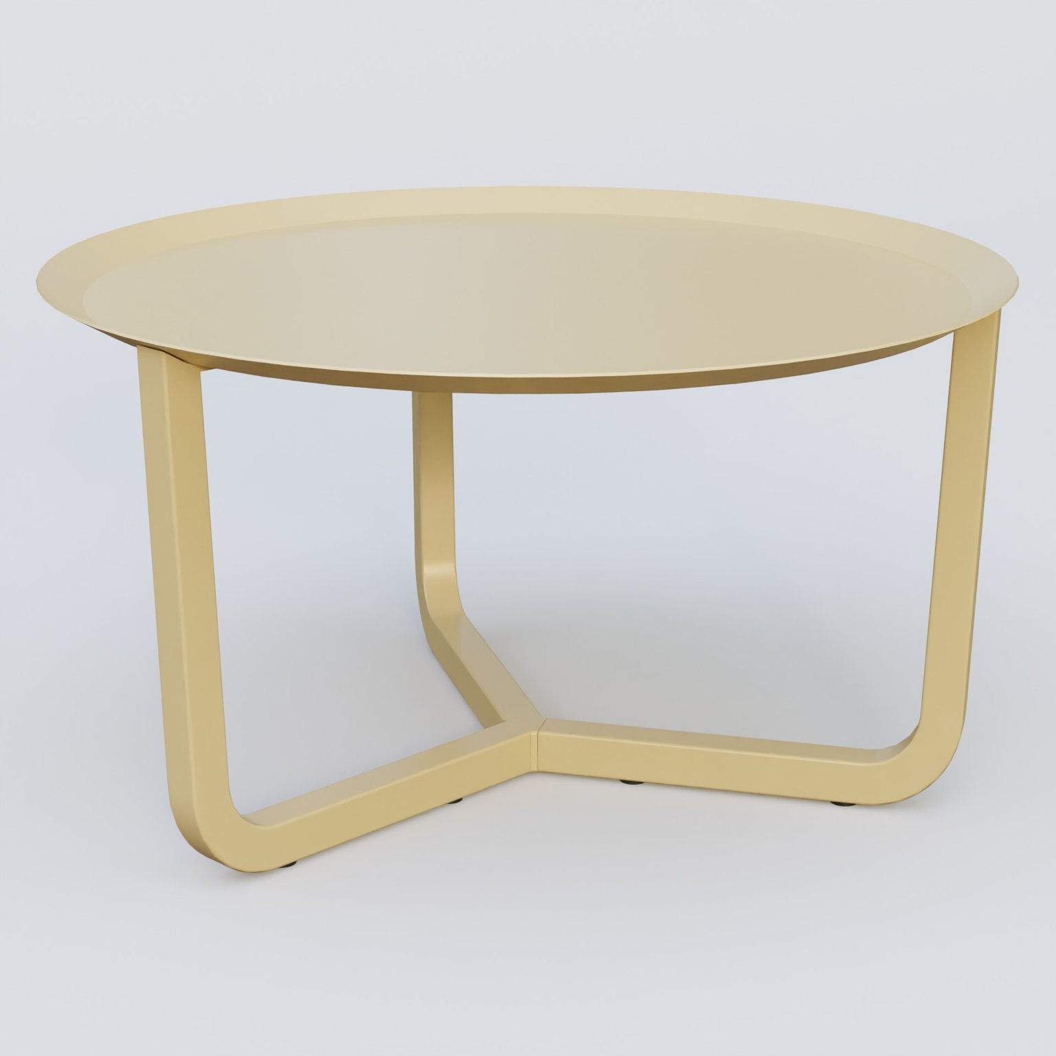 Table Basse Fashion Styl piètement tryptique. Plateau Jaune Cuivre (RAL 1002) et pietement Jaune Cuivre (RAL 1002).