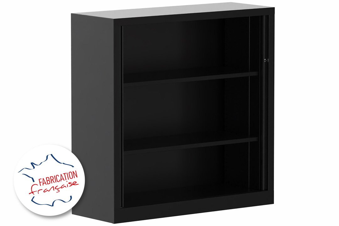 Armoire à rideaux 2P H120XL120XP43 2 Tablettes , coffre noir/rideaux noir