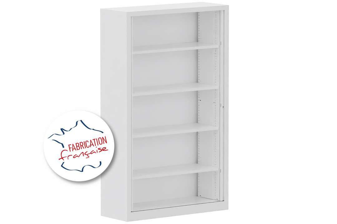 Caractéristique : Conformité aux normes européennes NF EN 14073-2, NF EN 14073-3 et NF EN 14074 ainsi qu’à la norme française NF D 62-041. Certification NF Office Excellence certifié, NF Environnement et GS. - Fabrication française de qualité irréprochable et certifiée. - La construction monobloc garantit une rigidité optimale. - Protection renforcée : serrure 3 points. - Accès au contenu garanti à 100% grâce à l'ouverture totale des rideaux escamotables. - La lame terminale en acier profilé, est laquée dans le coloris du coffre. - Poignée filante « toute hauteur » facilitant l'ouverture des portes. - Fond plat permettant l'extraction aisée des charges lourdes. - Charge supportée : 110 kg / tablette. - 4 vérins réglables de l'intérieur de l'armoire pour un parfait calage. - Fabrication Française. - 4 Tablettes. Finition : - Coffre métal, coloris blanc. - Rideaux polypropylène, coloris noir. Dimensions hors tout: H.198xL.120xP.43 cm.