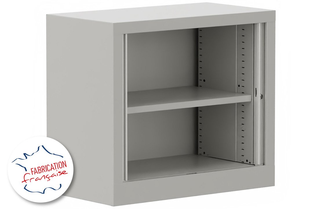 Armoire à rideaux H69,5xL80cm 1 tablette, coffre aluminium, rideaux merisier