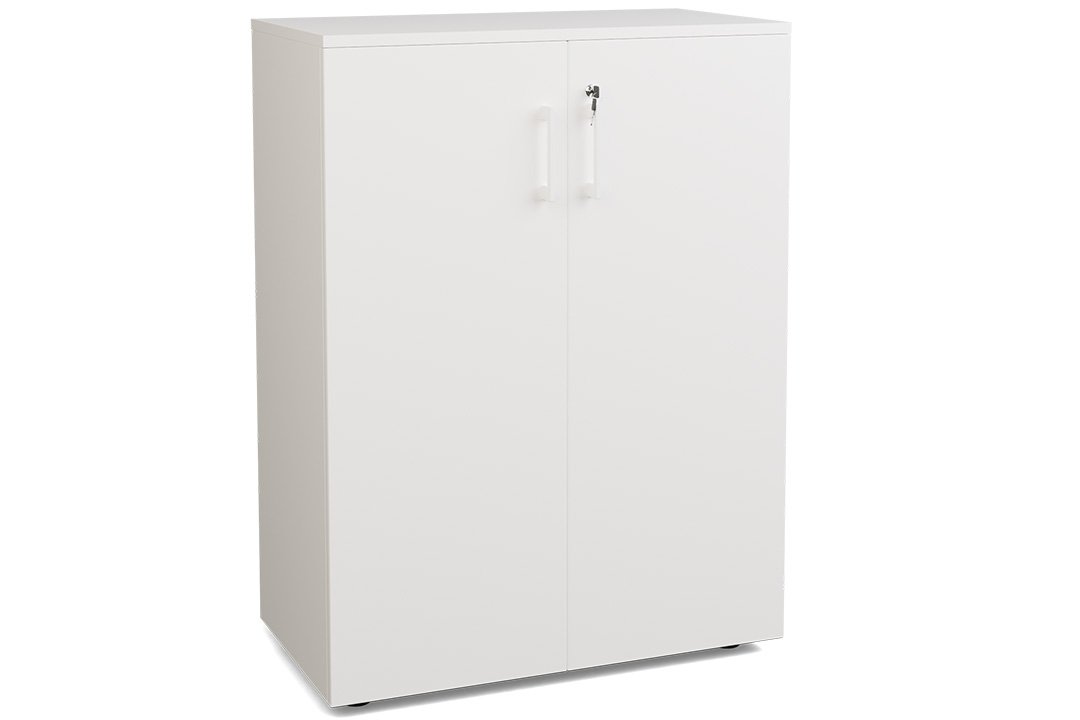 Armoire mélamine H102XL100 cm portes bois, -Finitions= Top de finition : BLANC / Corps d'armoire et tablettes : Blanc (BL)/ Façade : BLANC