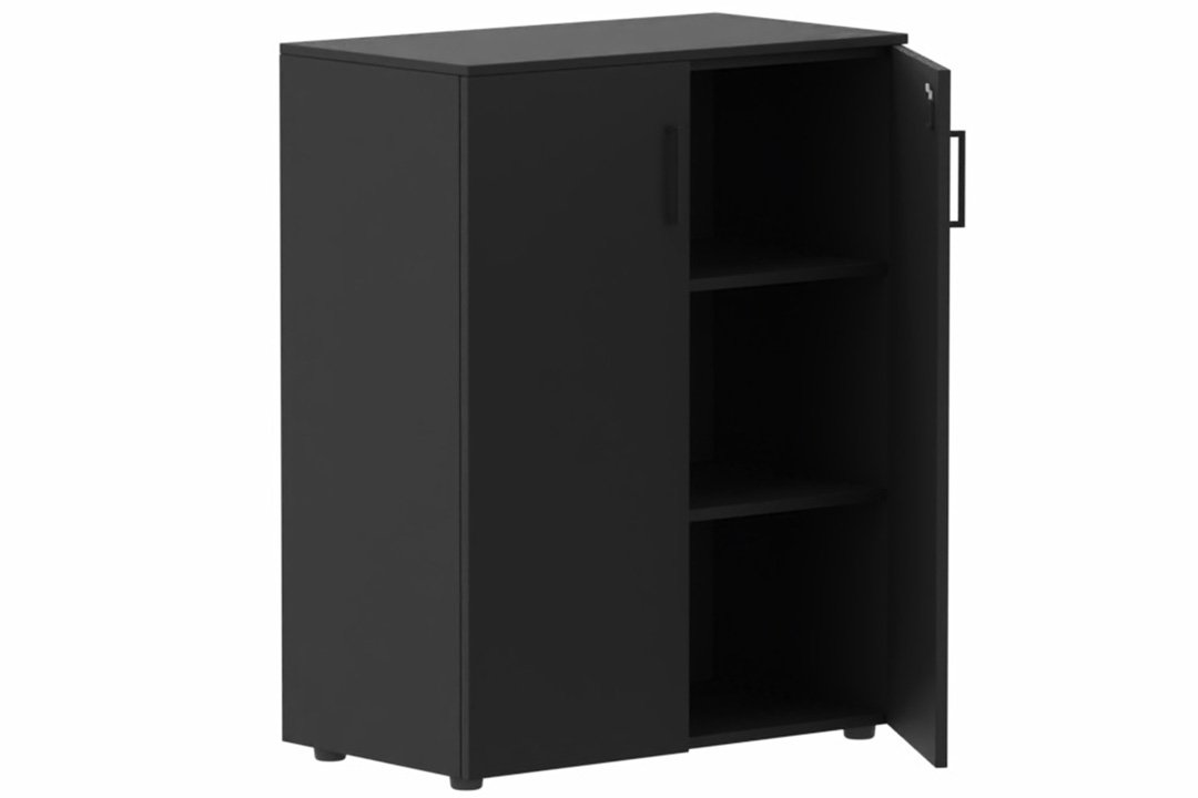 Armoire mélamine H102XL100 cm portes bois, Finitions= Top de finition : Noir( NR) / Corps d'armoire et tablettes : Noir (NR)/ Façade : Noir (NR) / Poignée NOIR (NR)