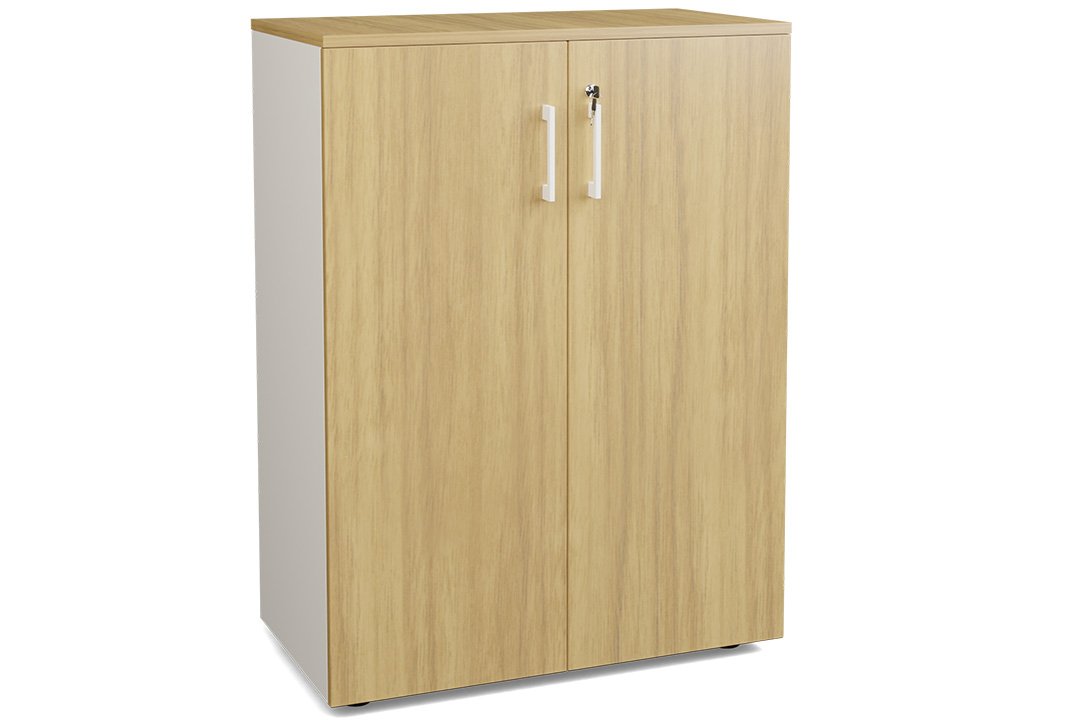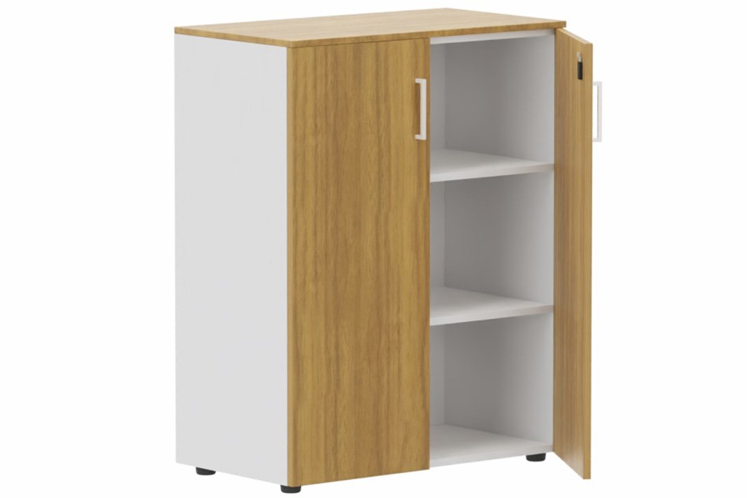 Armoire mélamine H102XL100 cm portes bois, Finitions= Top de finition : noyer / Corps d'armoire et tablettes : blanc Façade : noyer
