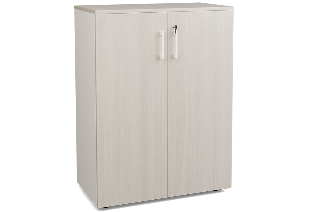 Armoire mélamine H102xL120cm portes bois, Top de finition : Acacia / Corps d'armoire et tablettes : Blanc (BL)/ Façade : Acacia