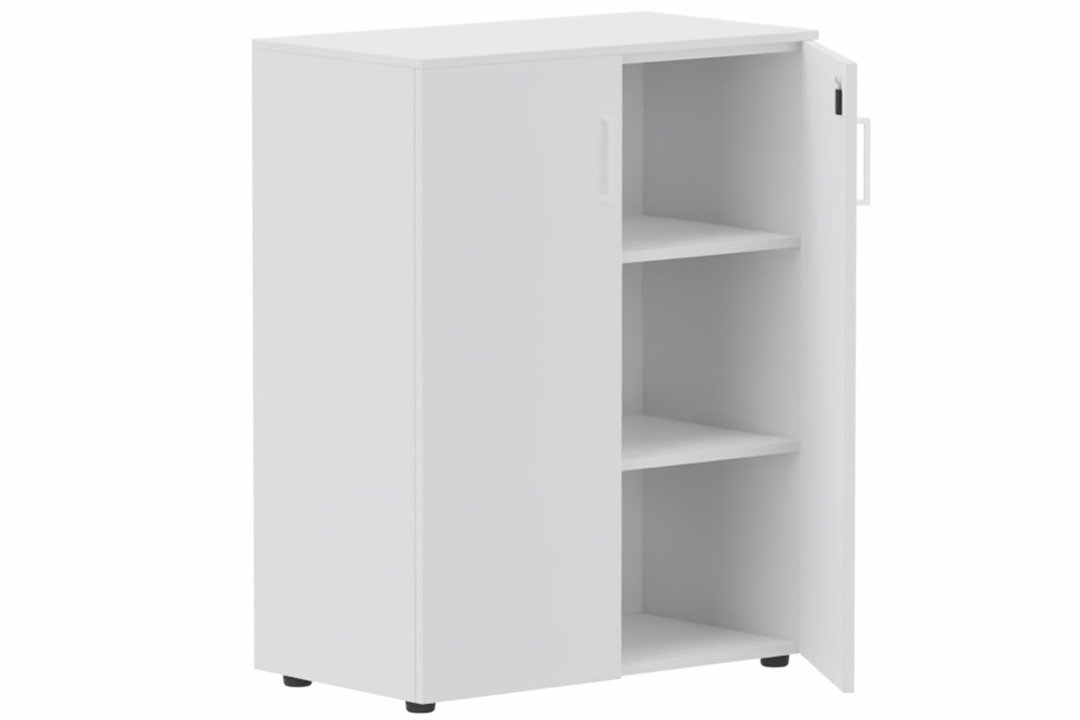 Armoire mélamine H102xL120cm portes bois, Top de finition : blanc / Corps d'armoire et tablettes : blanc / Façade :blanc /Poignée Blanche (B)