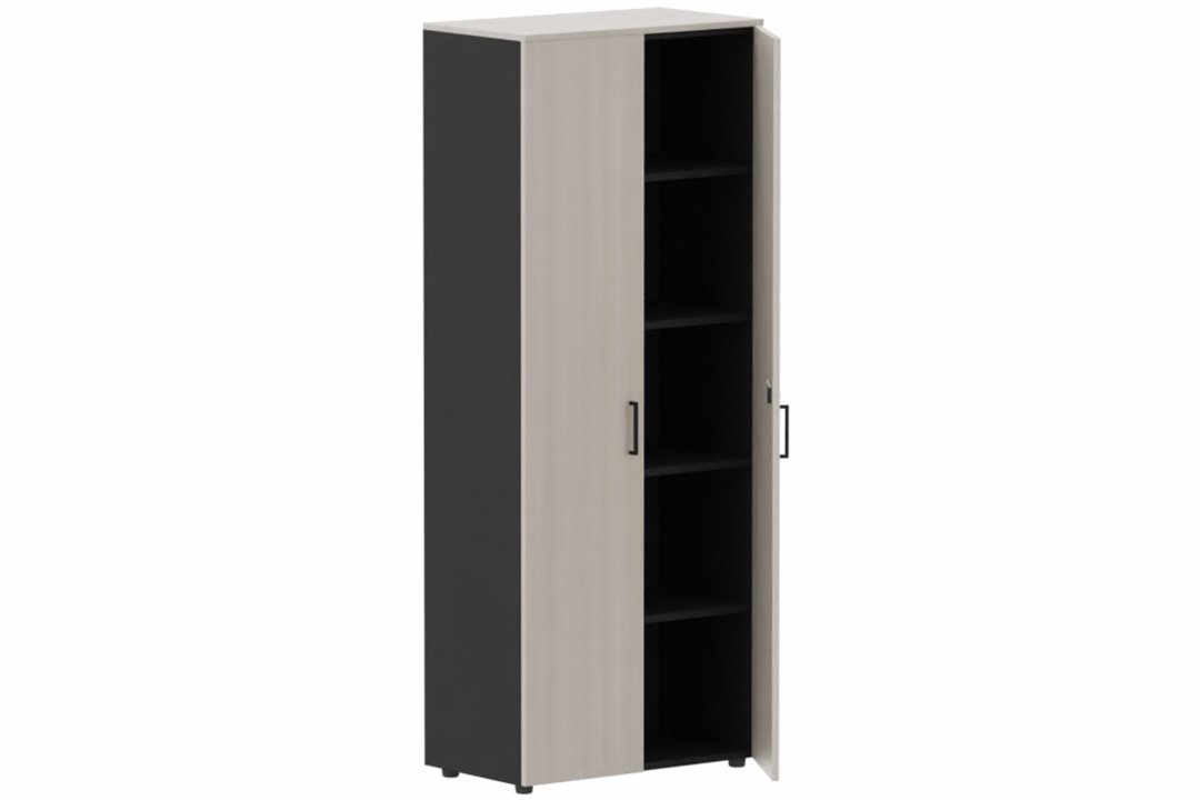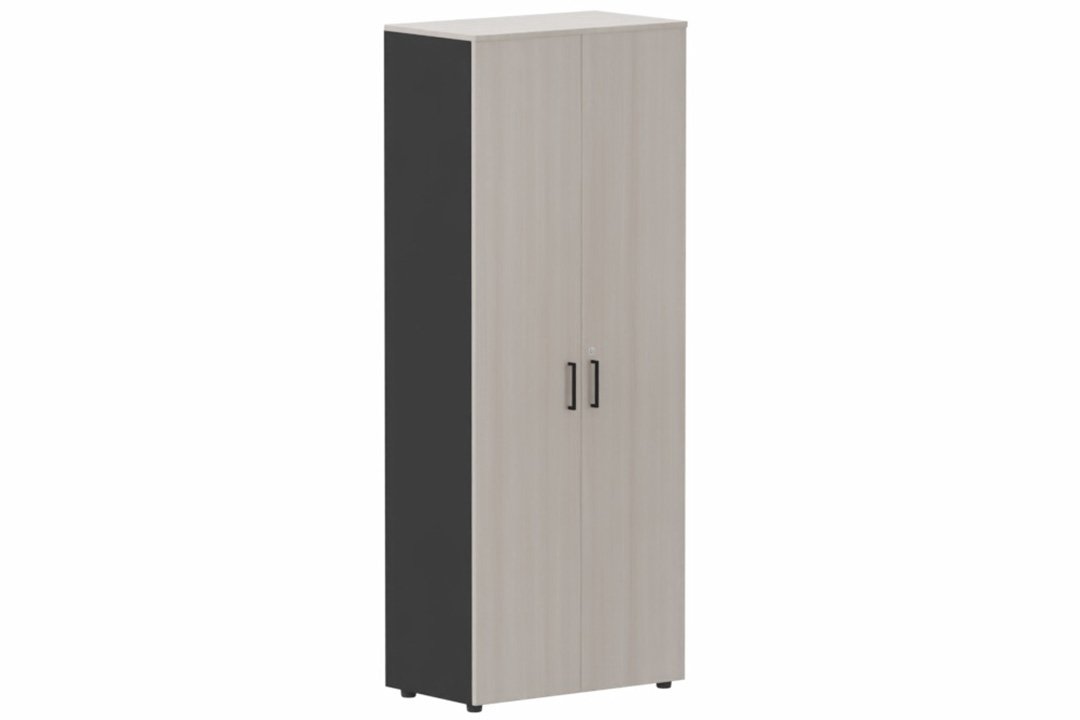 Armoire mélamine H196xL100cm portes bois, Finitions= Top de finition : acacia (AK) / Corps d'armoire et tablettes : Noir (NR)/ Façade : Acacia (AK) poignées (N)
