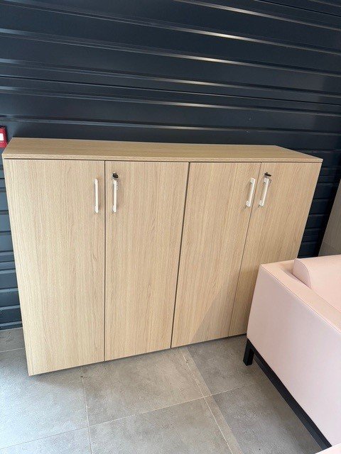 - Armoire mélaminé hauteur 120cm largeur 80cm double top de finition longueur totale 160cm, coffre blanc portes et top chêne