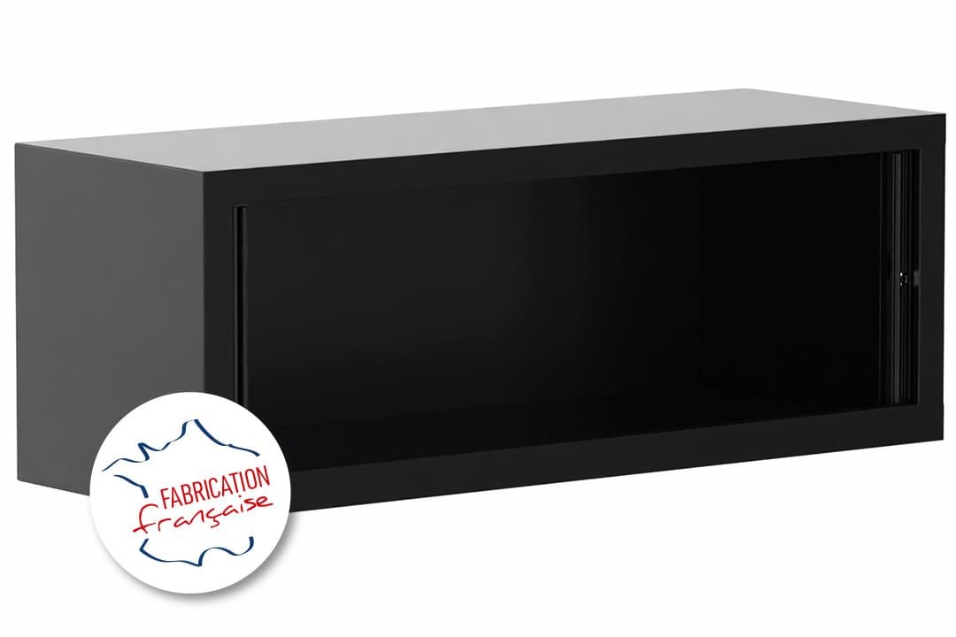 Armoire rehausse H44xL120cm coffre noir grainé/rideaux acacia