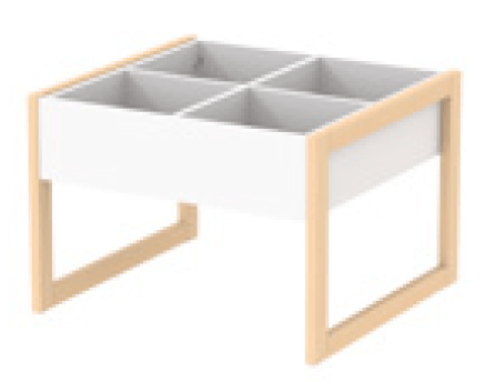 Bac à albums enfant NATUR 4 cases mélaminé piètement bois massif - L75xP71xH52,5 cm