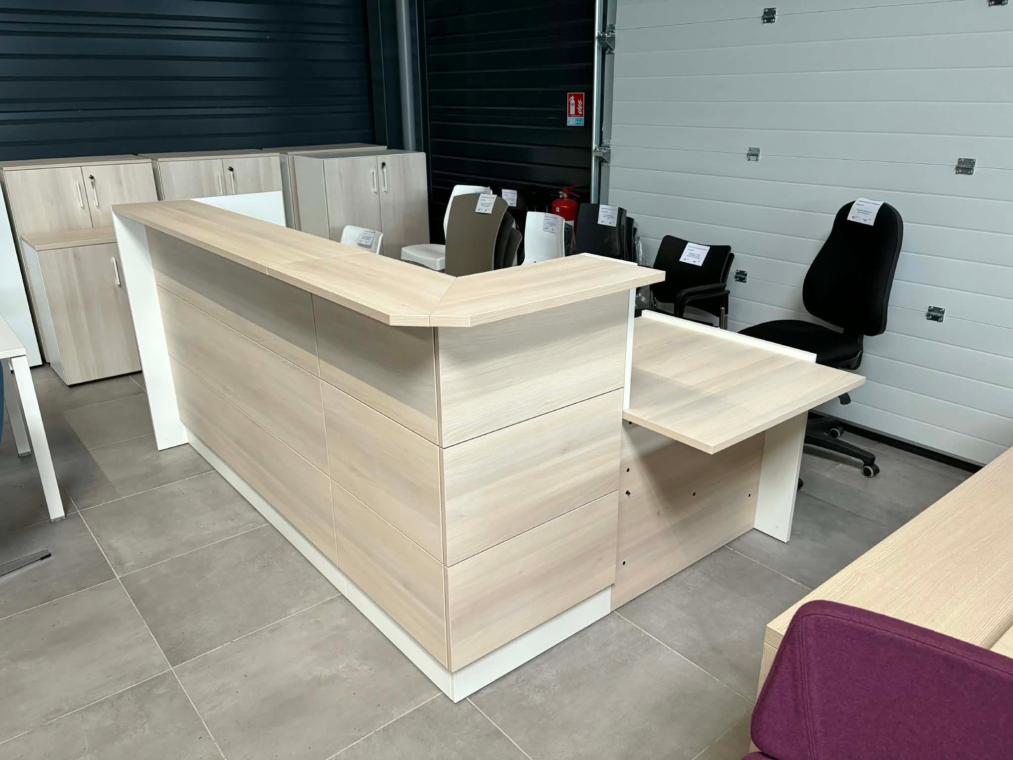 Banque d'accueil Coloris Blanc avec façade verre blanc Largeur 2300 + retour PMR