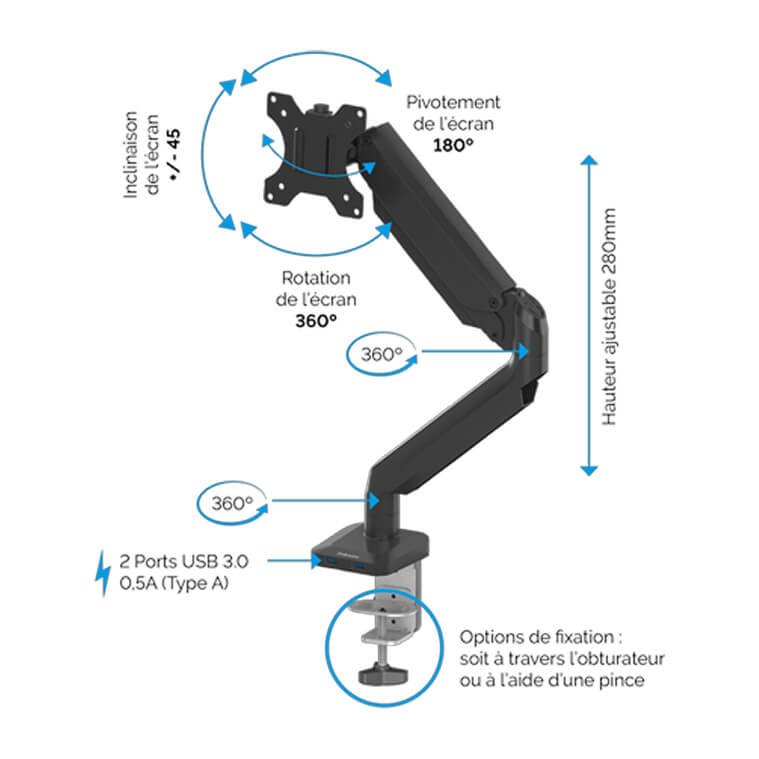 • Supporte un écran pesant de 1,5 à 8kg et jusqu’à 32“.
