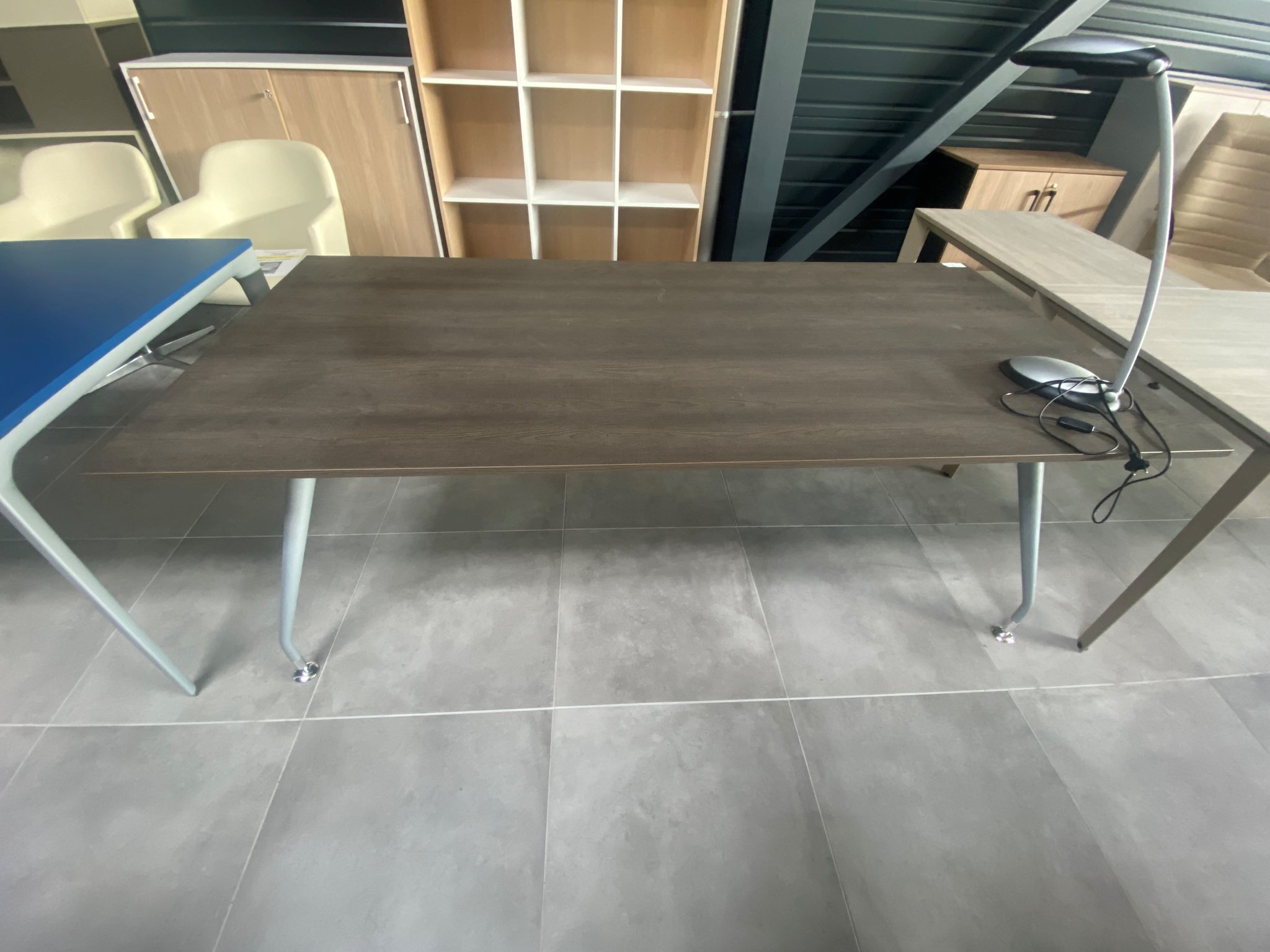- Bureau de direction plan droit 210 x 100 cm, plateau finition wengé et piét. alu