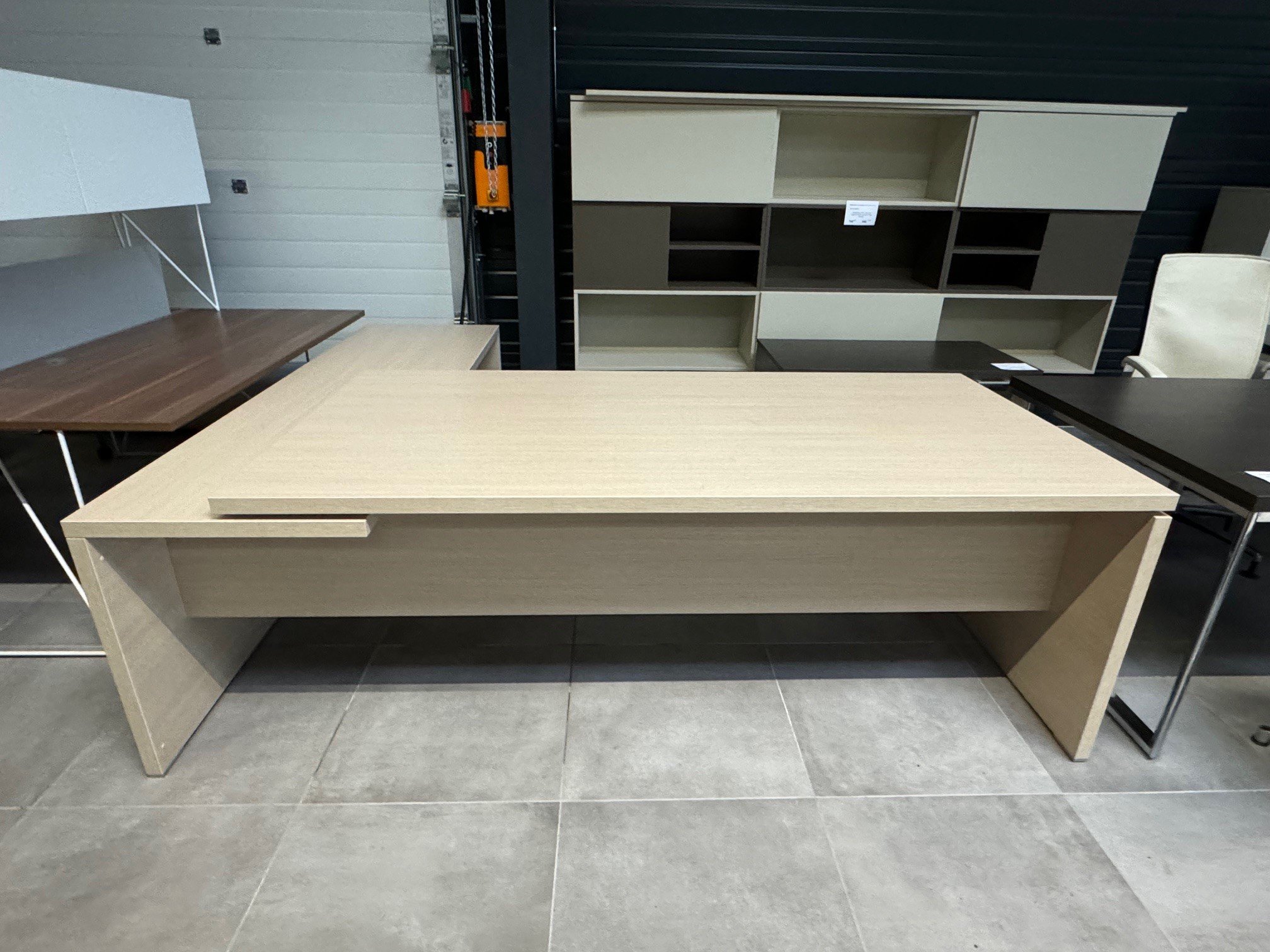 - Bureau direction X5 longueur totale 230 x 200 cm avec retour droit finition chêne clair