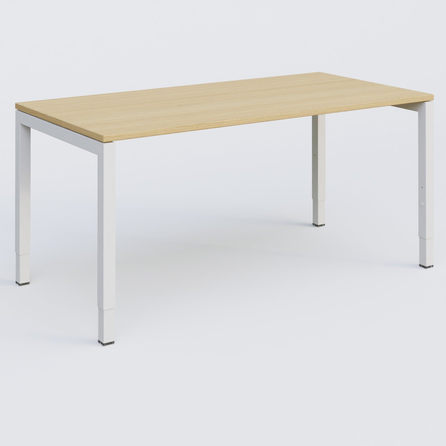 Bureau droit gamme K3 160-80 cm hauteur réglable. Plateau Chêne clair et pietement Blanc.