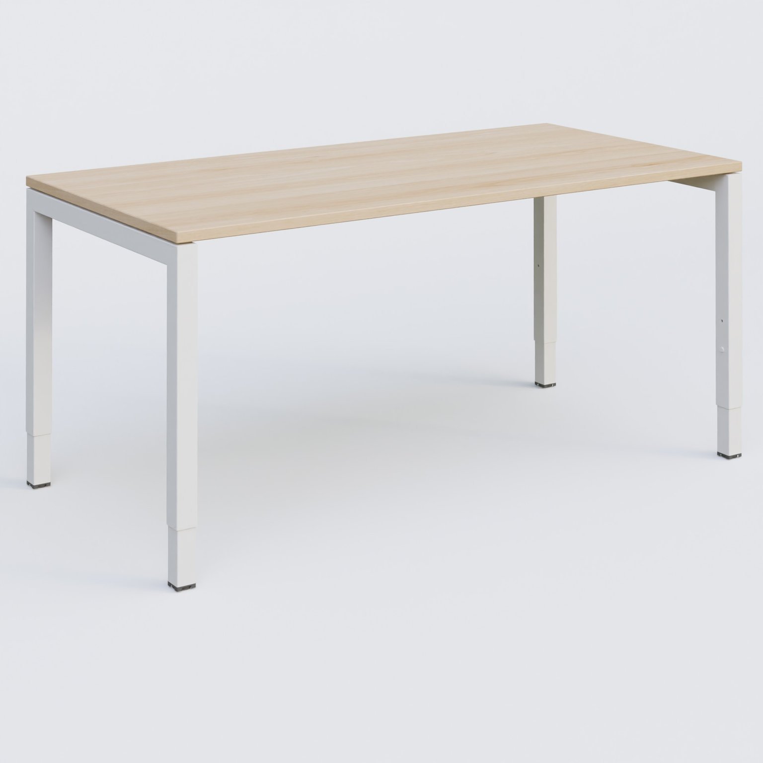Bureau droit gamme K3 160-80 cm hauteur réglable. Plateau Hêtre et pietement Blanc.