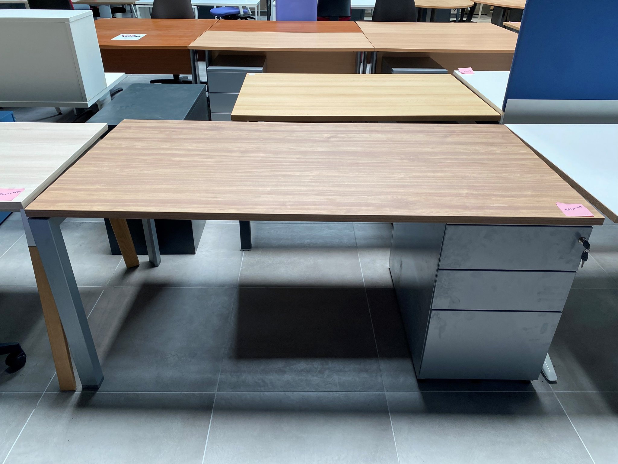 - Bureau K3 160 x 80 cm avc caiss HB 3 trs couleur alu, plateau NOYER et piét alu