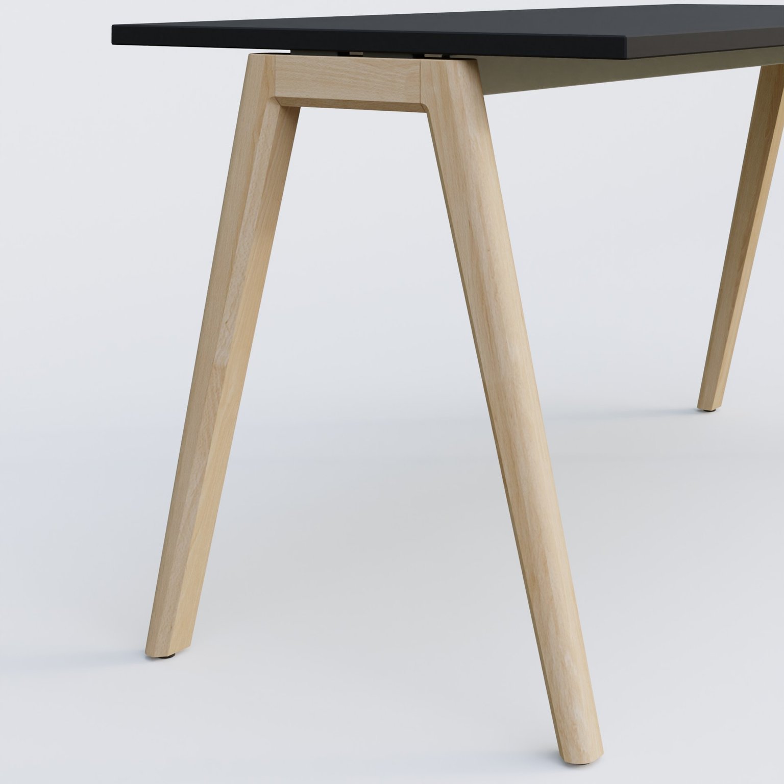 Bureau K9 piètement incliné en bois et plateau 160*70 cm. Plateau Noir et pietement bois massif de hêtre.
