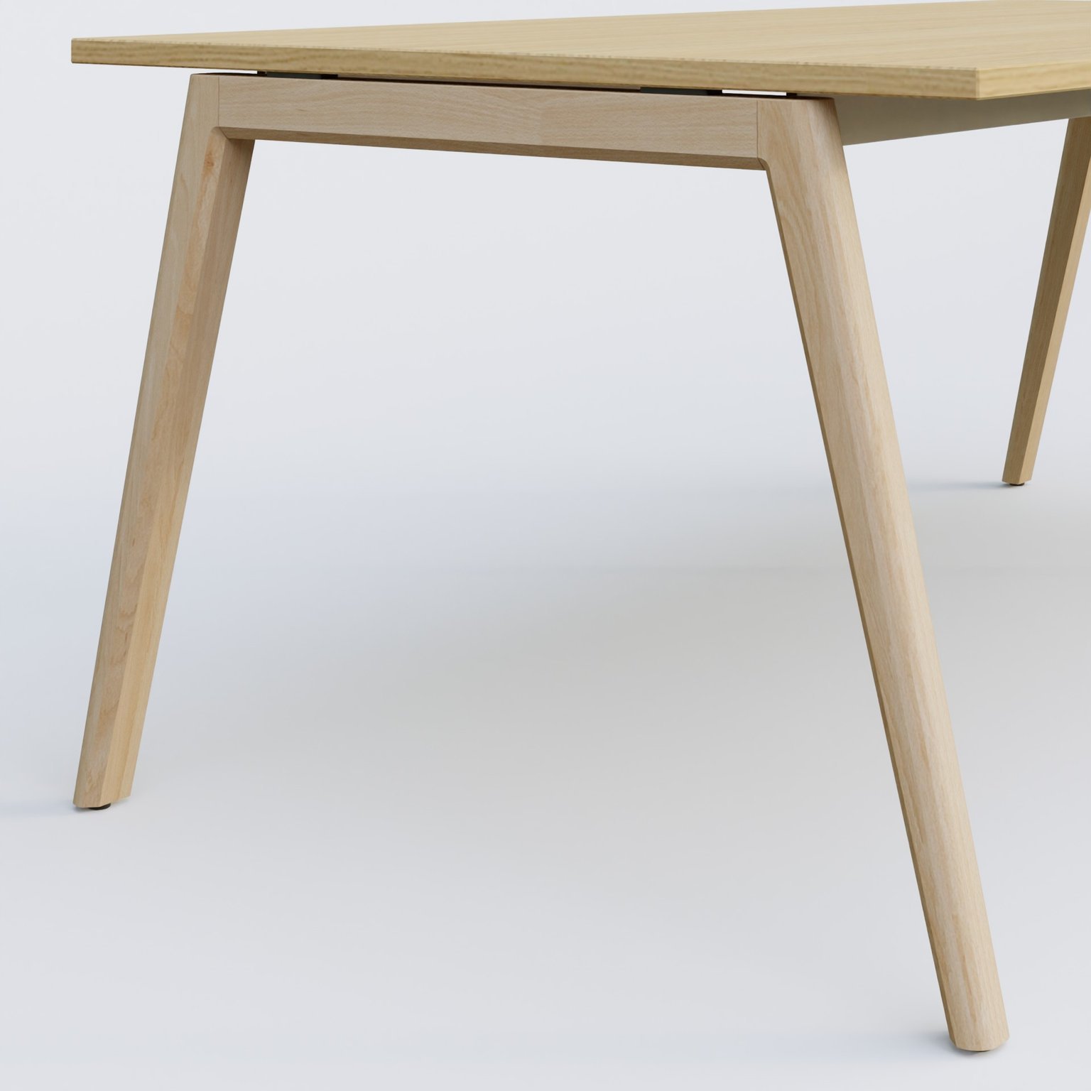 Bureau K9 piètement incliné en bois et plateau 200*100 cm. Plateau Chêne clair et pietement bois massif de hêtre.