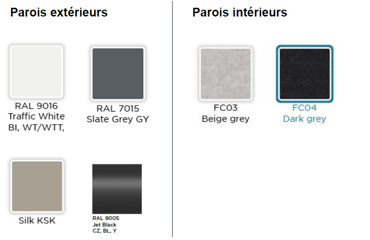 -Poignée de porte en acier galvanisé, peint poudre couleur de la structure, avec éléments en aluminium poli