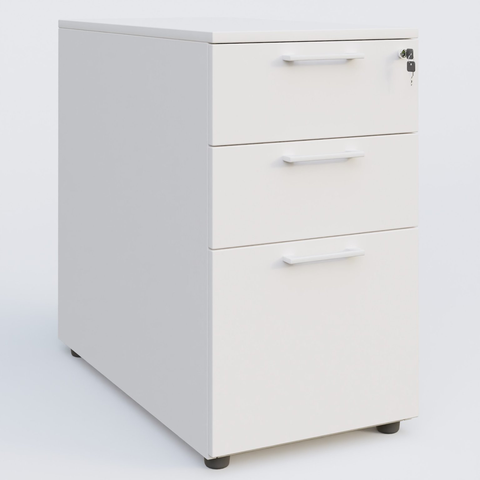 Caisson hauteur de bureau mélamine 3 tiroirs, profondeur 80cm. Caisson Blanc et poignets Blanc.