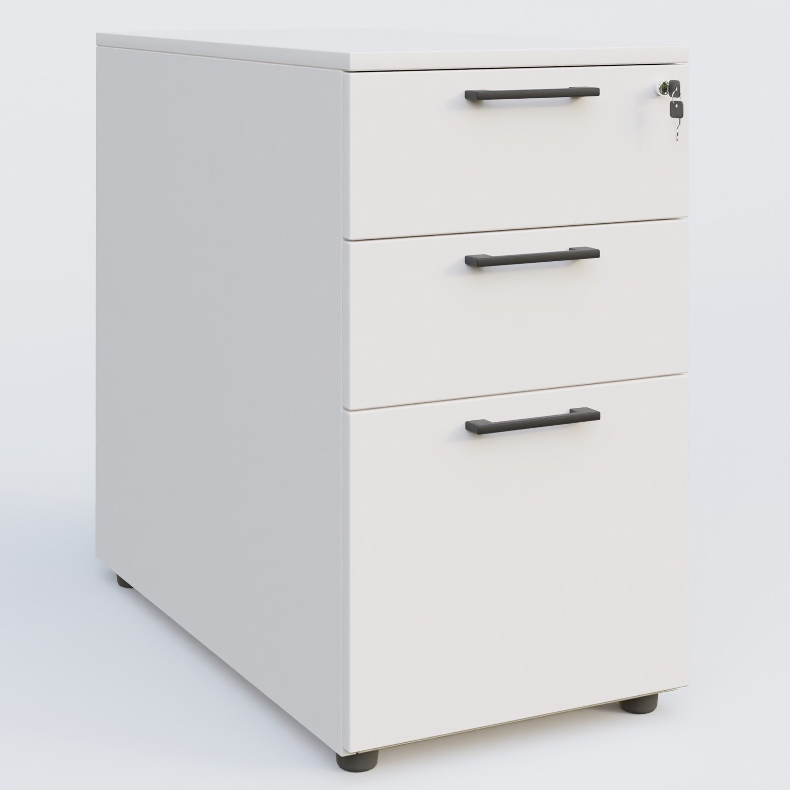 Caisson hauteur de bureau mélamine 3 tiroirs, profondeur 80cm. Caisson Blanc et poignets Noir.