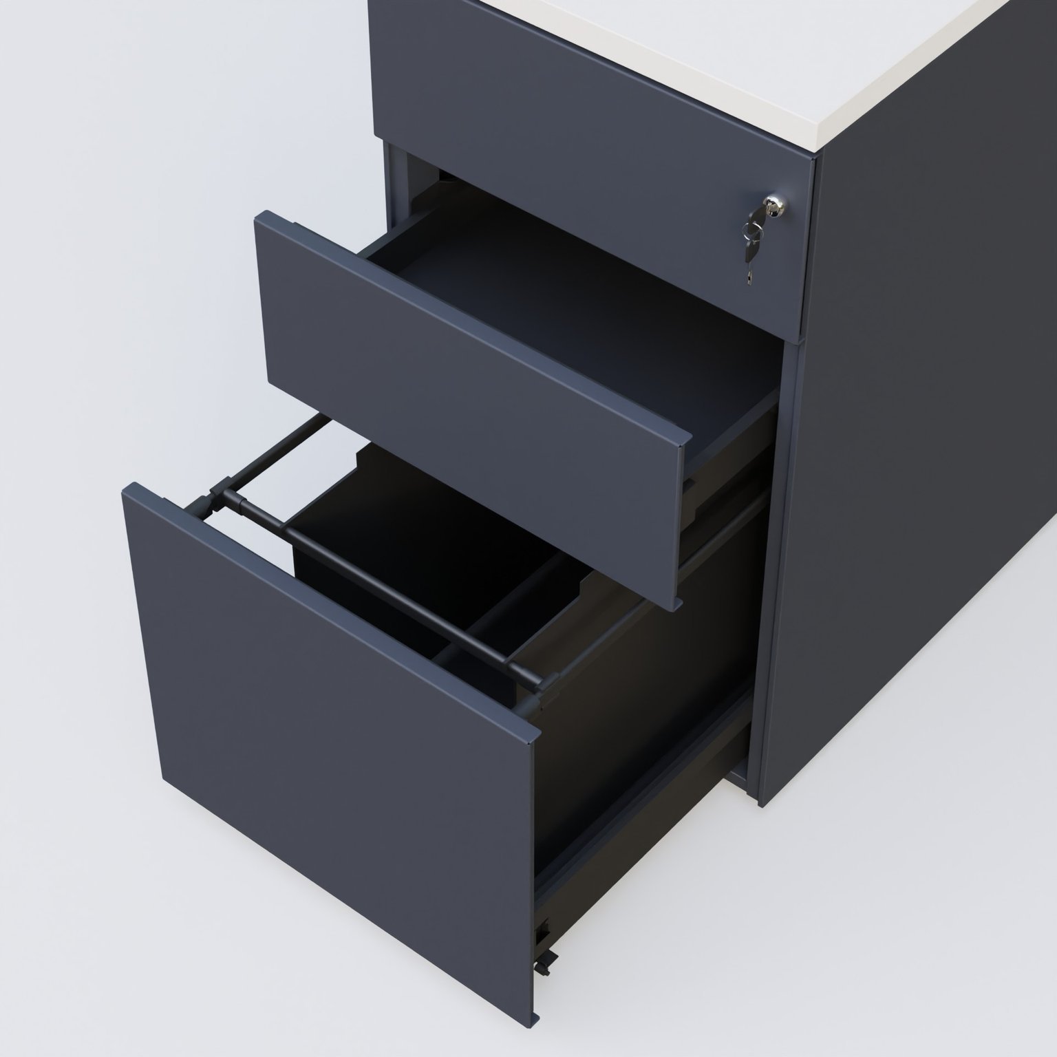 Caisson hauteur de bureau métalique 3 tiroirs avec top de finition, profondeur 60cm. Plateau Blanc et caisson Anthracite.