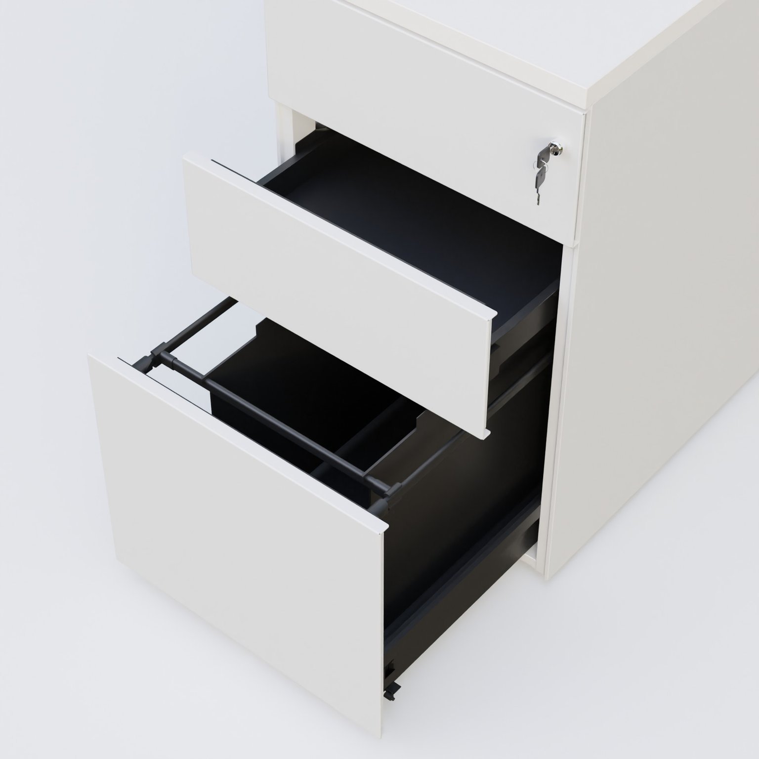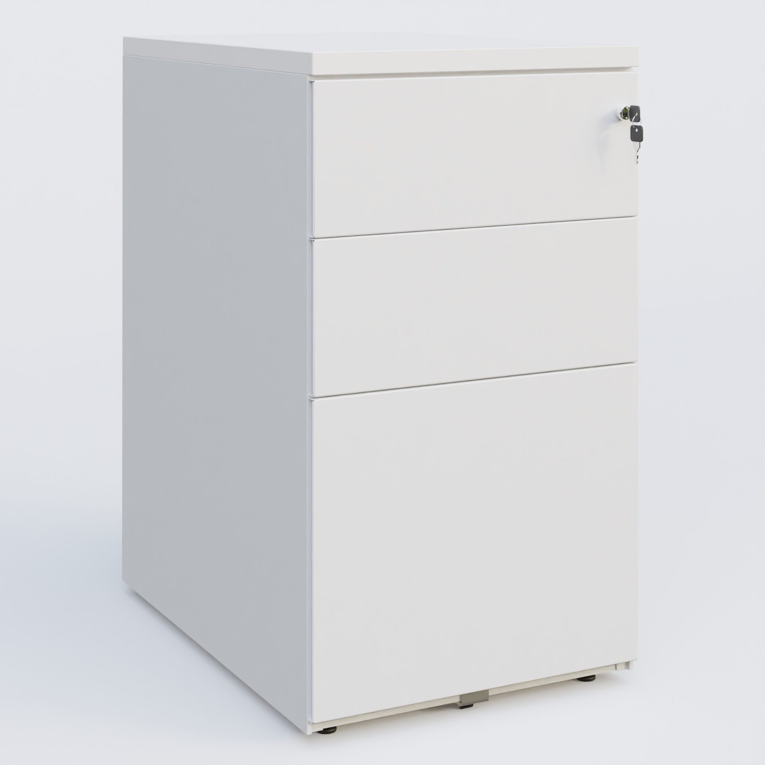 Caisson hauteur de bureau métalique 3 tiroirs avec top de finition, profondeur 60cm. Plateau Blanc et caisson Blanc.