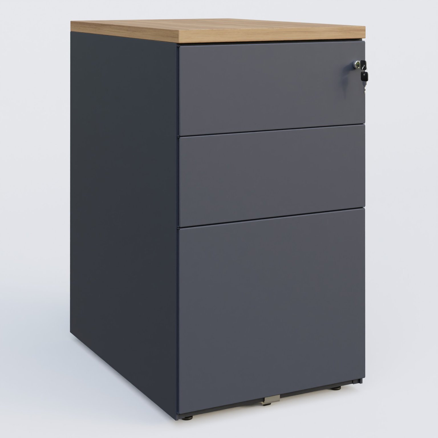 Caisson hauteur de bureau métalique 3 tiroirs avec top de finition, profondeur 80cm. Plateau Noyer et caisson Anthracite.