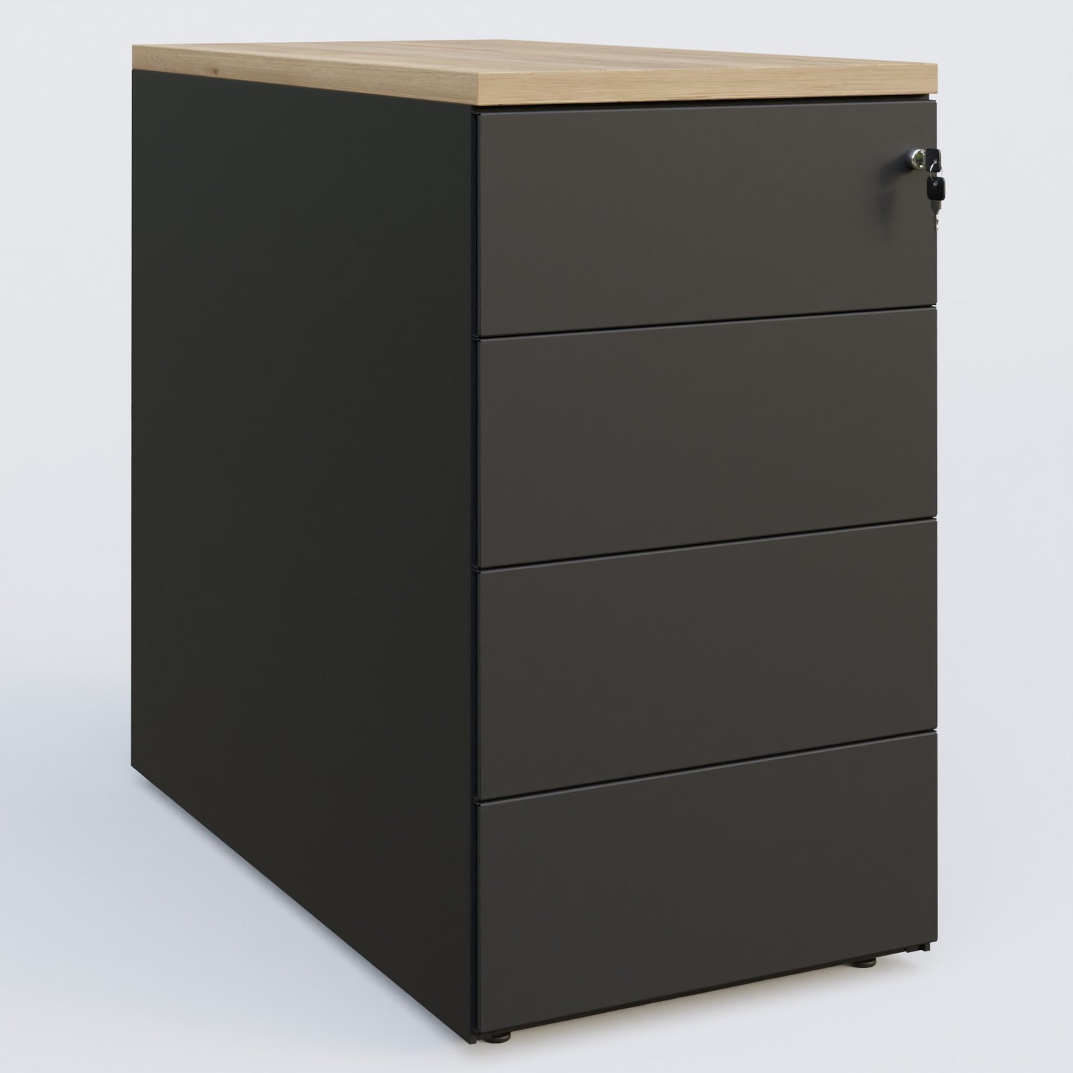 Caisson hauteur de bureau métalique 4 tiroirs avec top de finition, profondeur 60cm. Plateau Chêne naturel et caisson Noir.