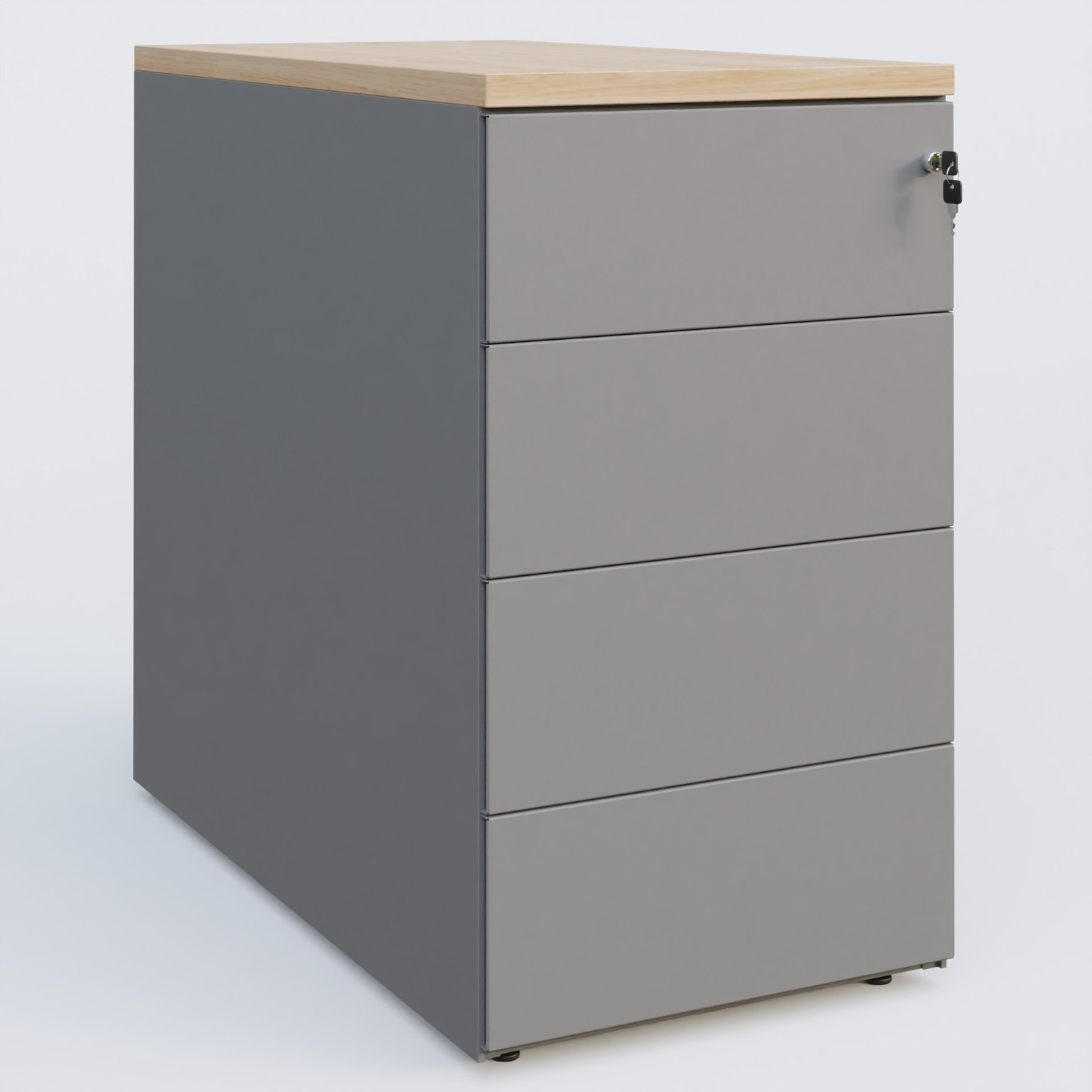 Caisson hauteur de bureau métalique 4 tiroirs avec top de finition, profondeur 80cm. Plateau Hêtre et caisson Aluminium.