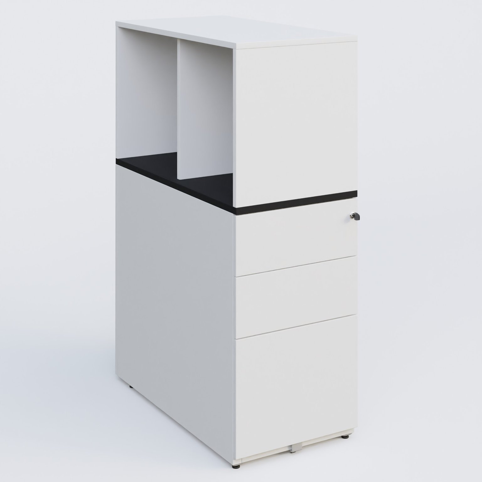 Caisson HB 3 tiroirs avec niche. Caisson Blanc top de finition Noir Mat et niche blanche.