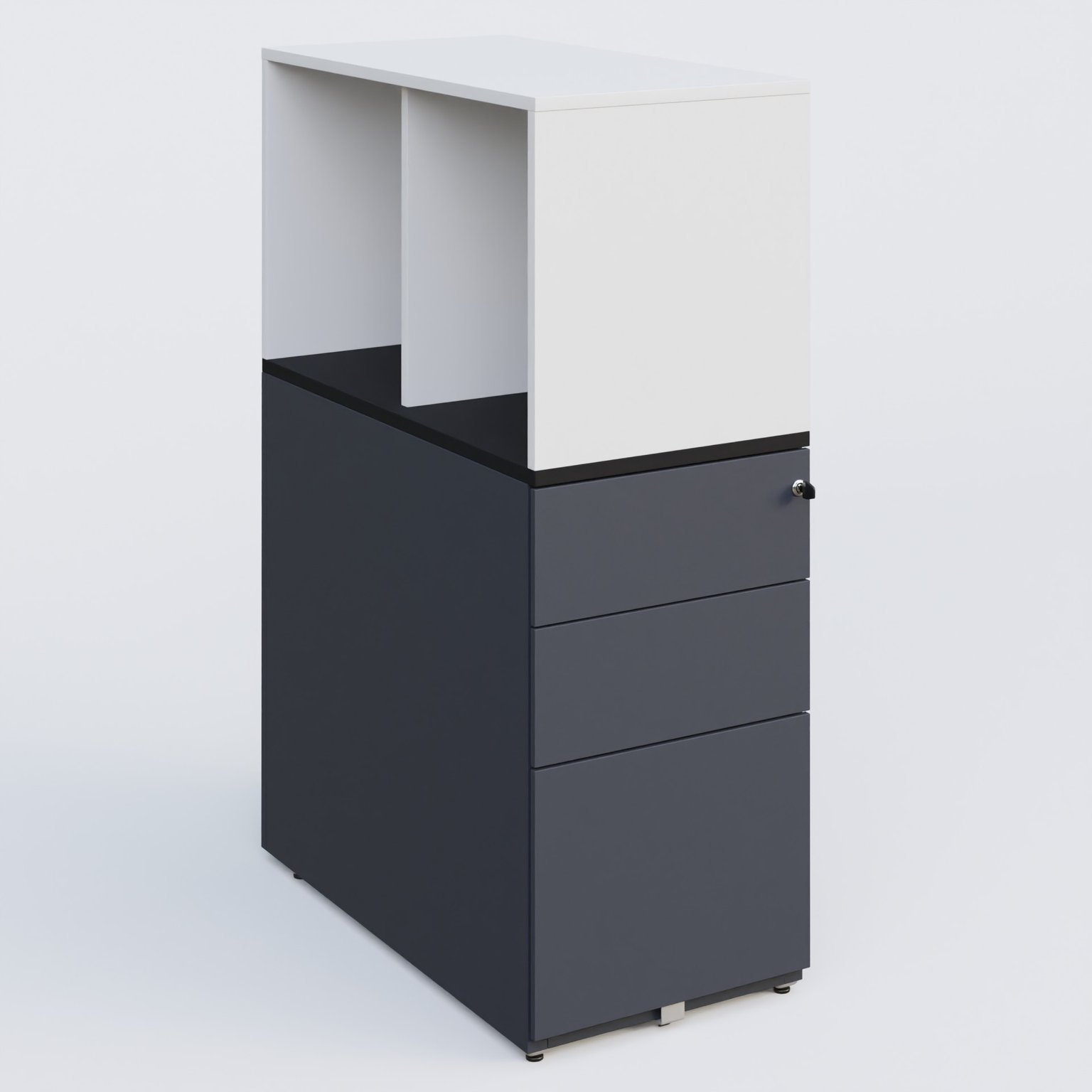 Caisson HB 3 tiroirs avec niche. Caisson Anthracite top de finition Blanc et niche blanche. blancBl Anthracite (AN)