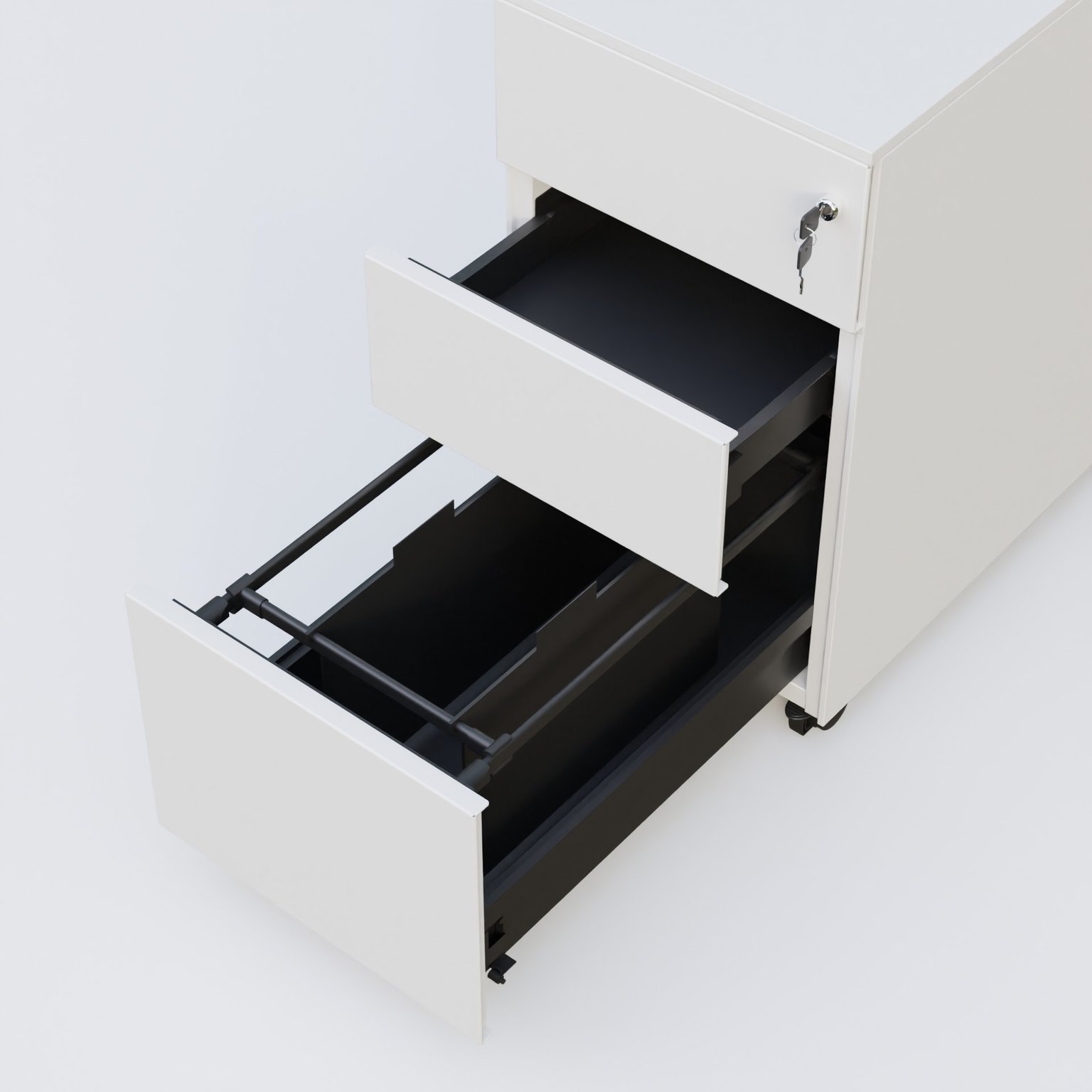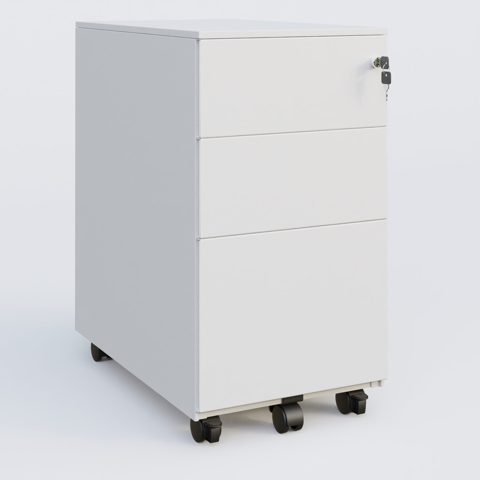 Caisson métal slim sur roulettes 3 tiroirs dont 1 DS H60xL30xP52cm/ blanc