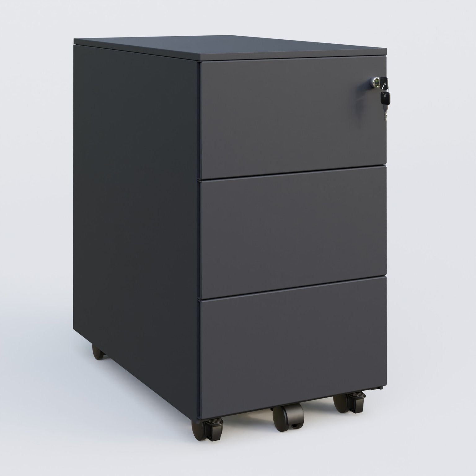 Caisson métal slim sur roulettes 3 tiroirs H57xL32xP54cm/ anthracite