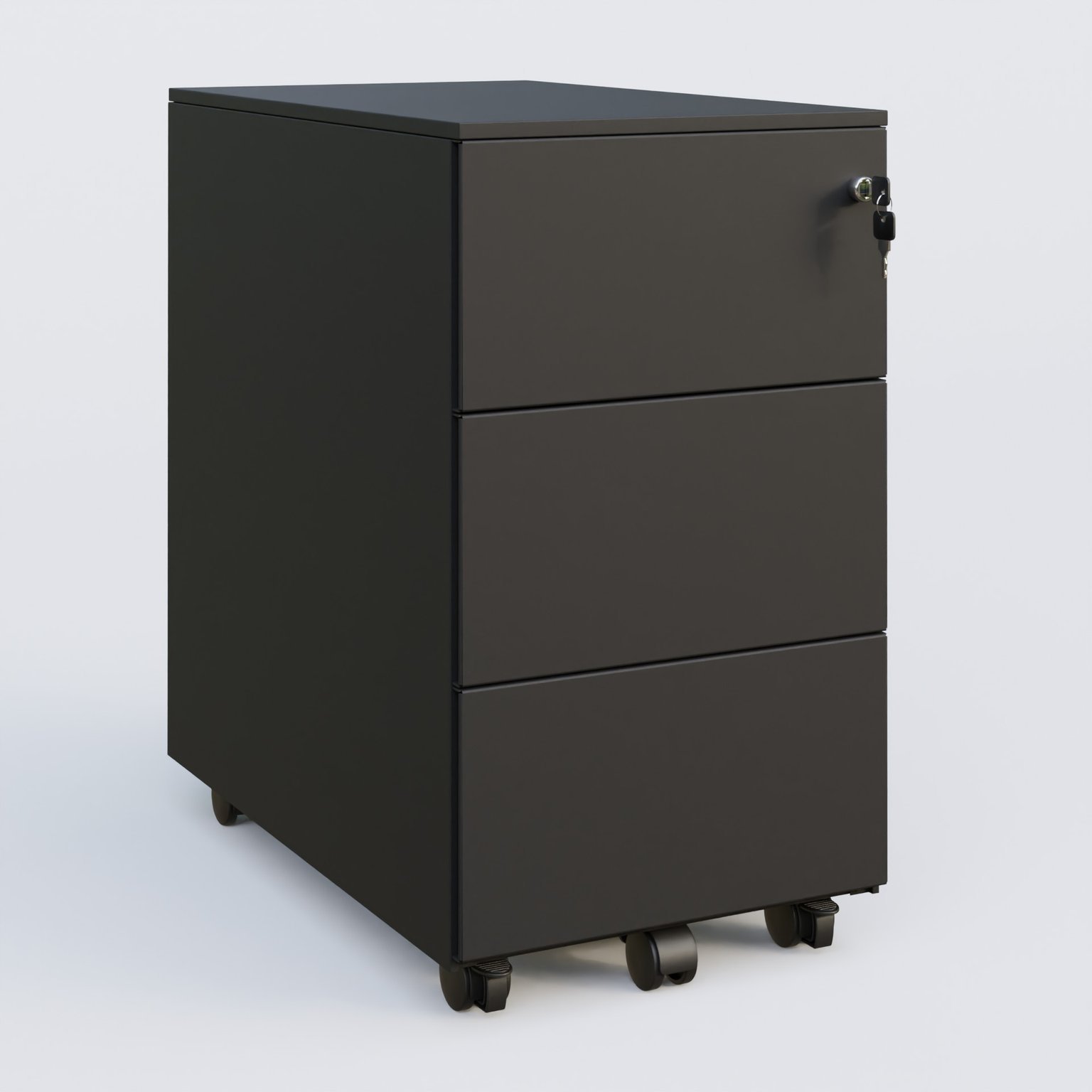 Caisson métal slim sur roulettes 3 tiroirs H57xL32xP54cm/ noir grainé