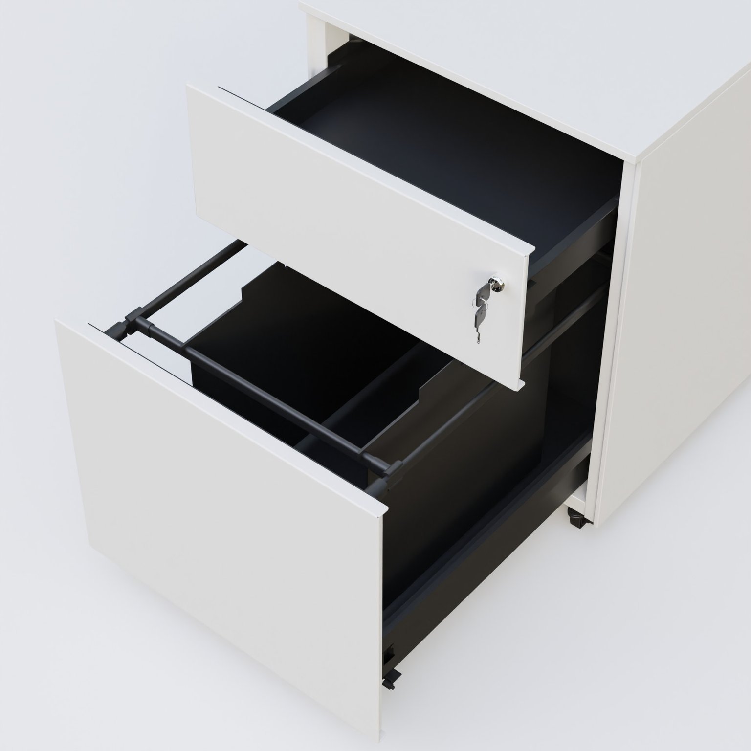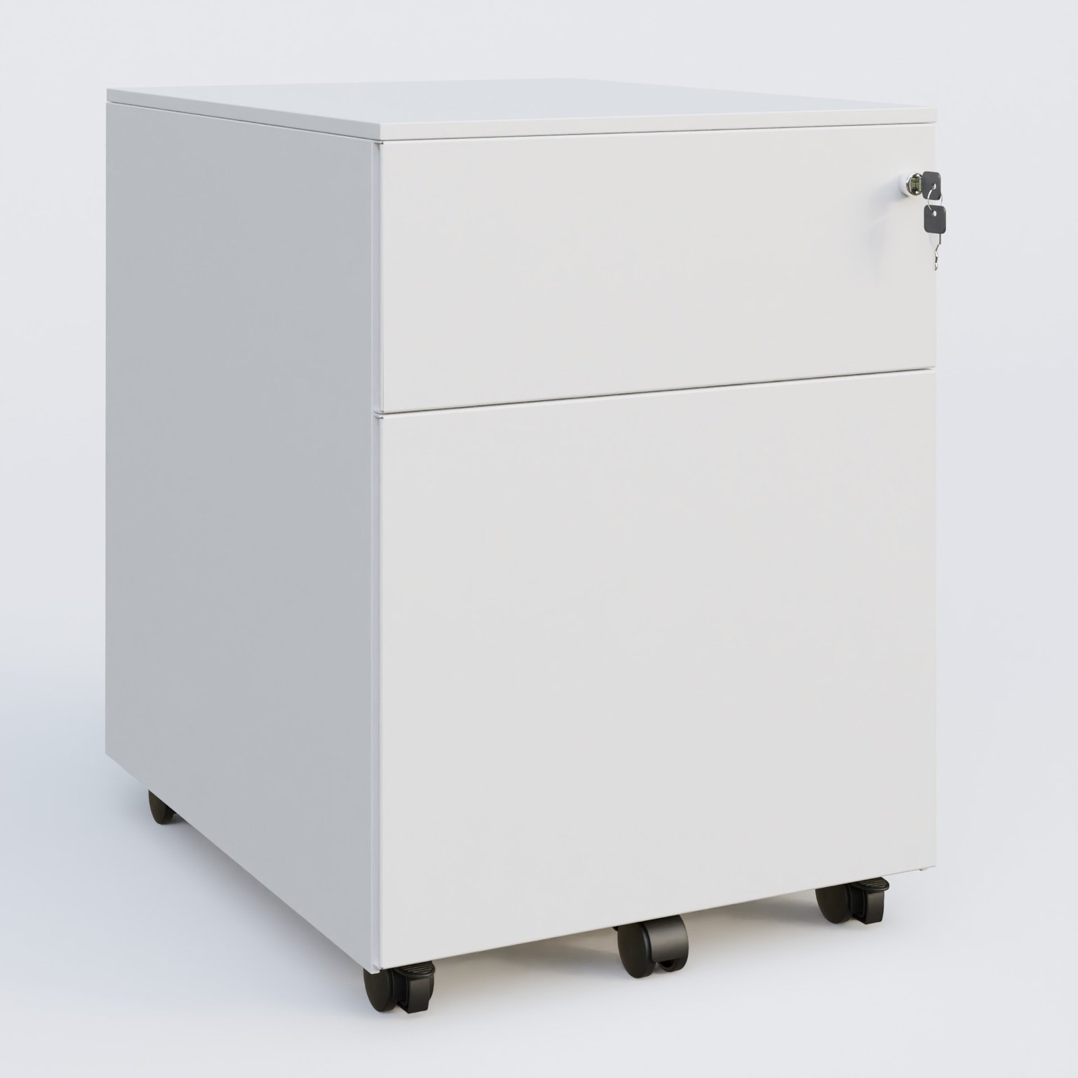 - Caisson métal sur roulettes 2 tiroirs H57xL42xP54cm/ blanc