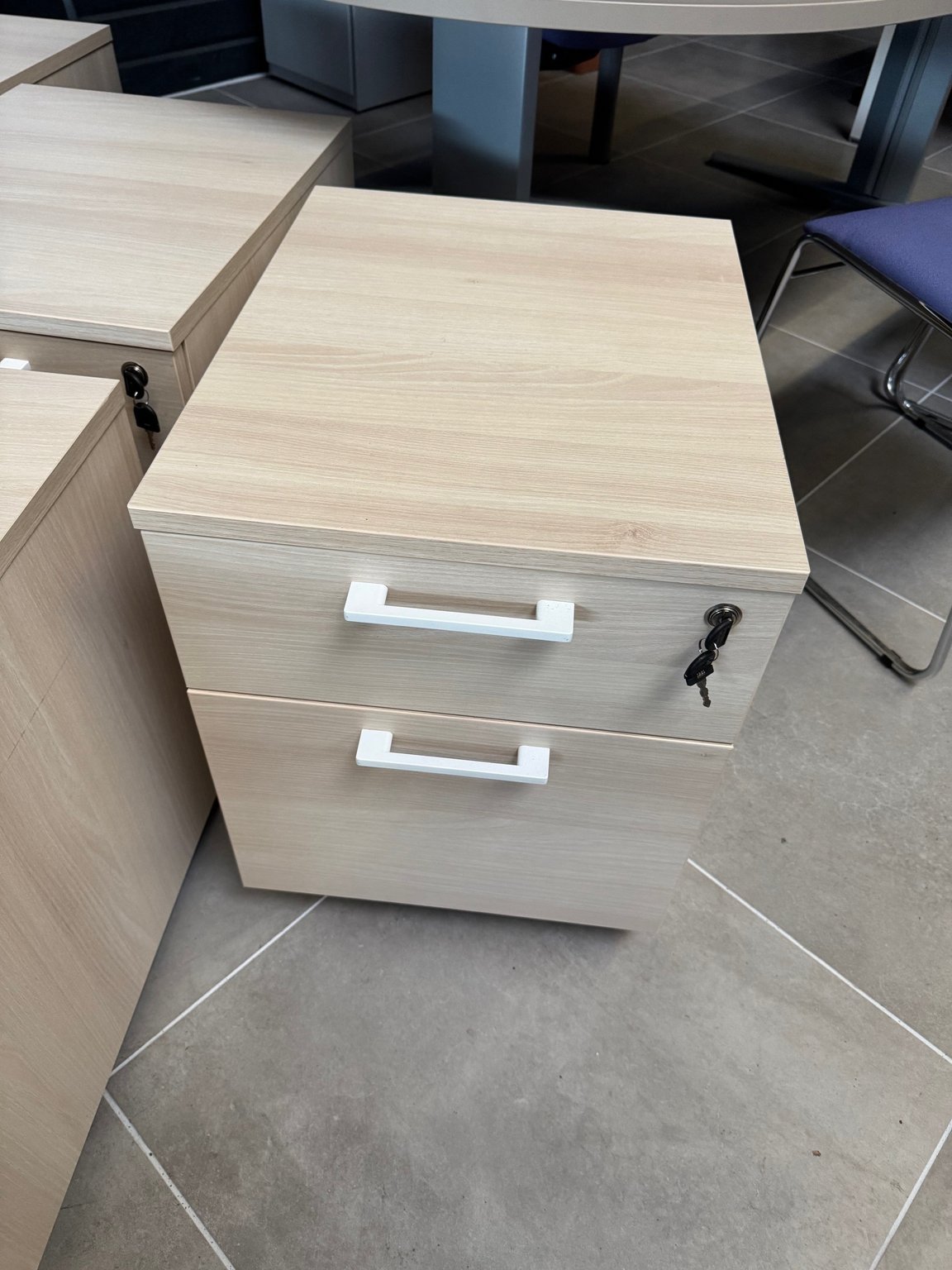 - Caisson mobile mélaminé 2 tiroirs dont 1 pour dossiers suspendus finition acacia