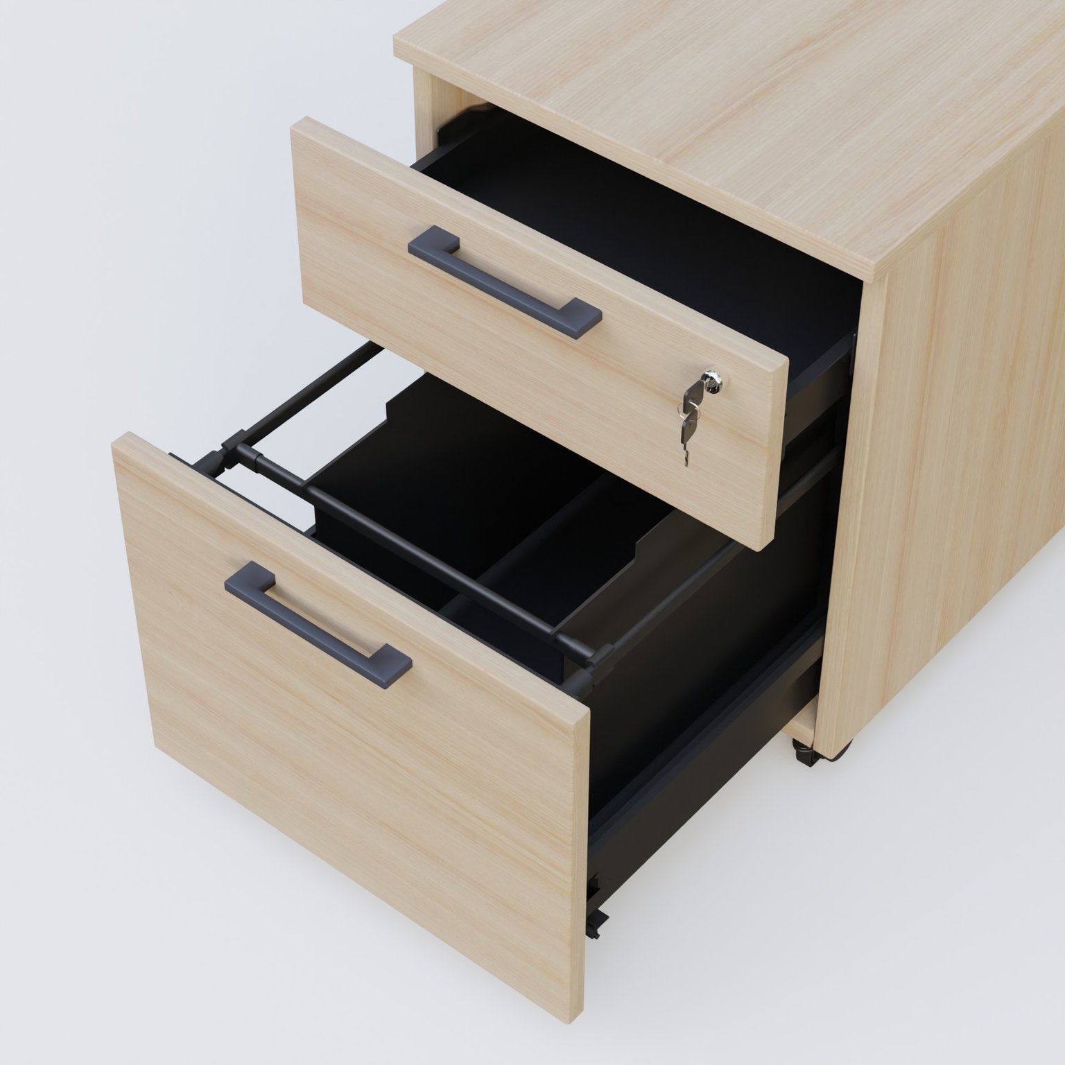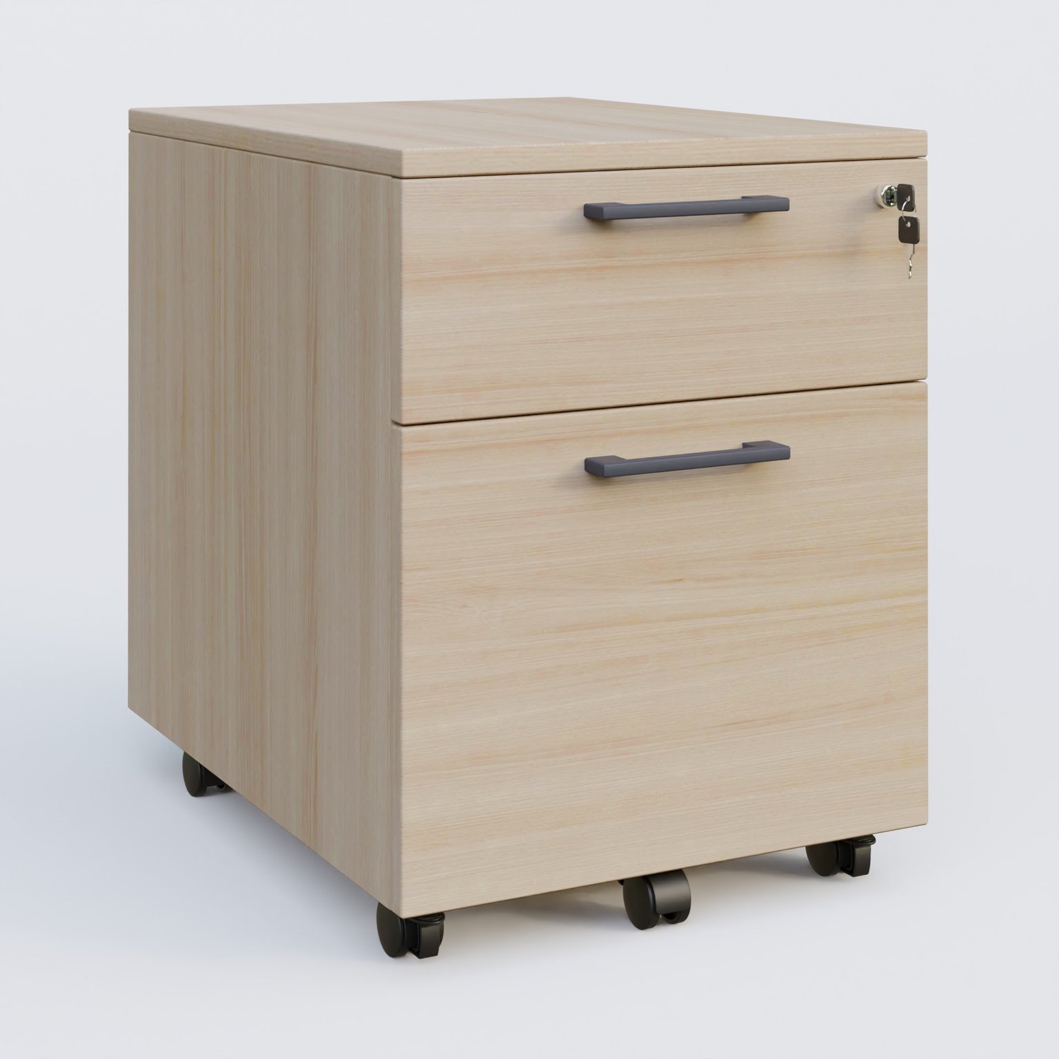Caisson mobile mélamine 2 tiroirs, hauteur 55 cm. Caisson Acacia et poignets Anthracite.