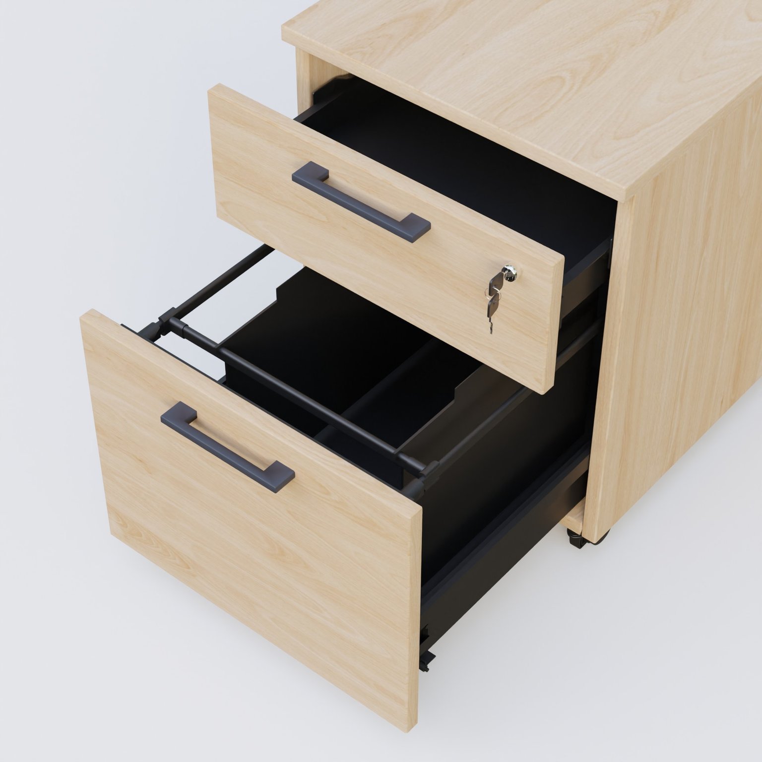Caisson mobile mélamine 2 tiroirs, hauteur 55 cm. Caisson Chêne clair et poignets Anthracite. cheneCe