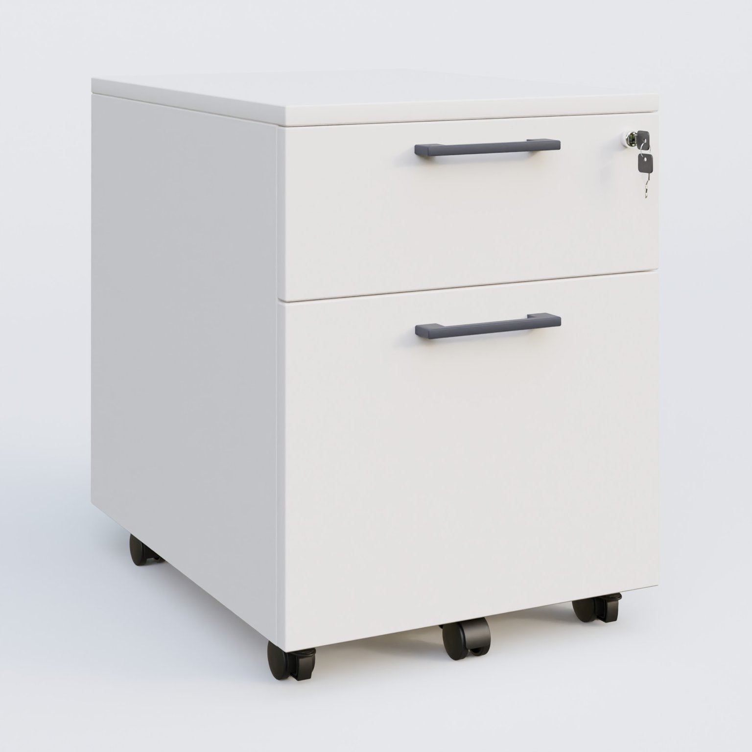 Caisson mobile mélamine 2 tiroirs, hauteur 55 cm. Caisson Blanc et poignets Anthracite.