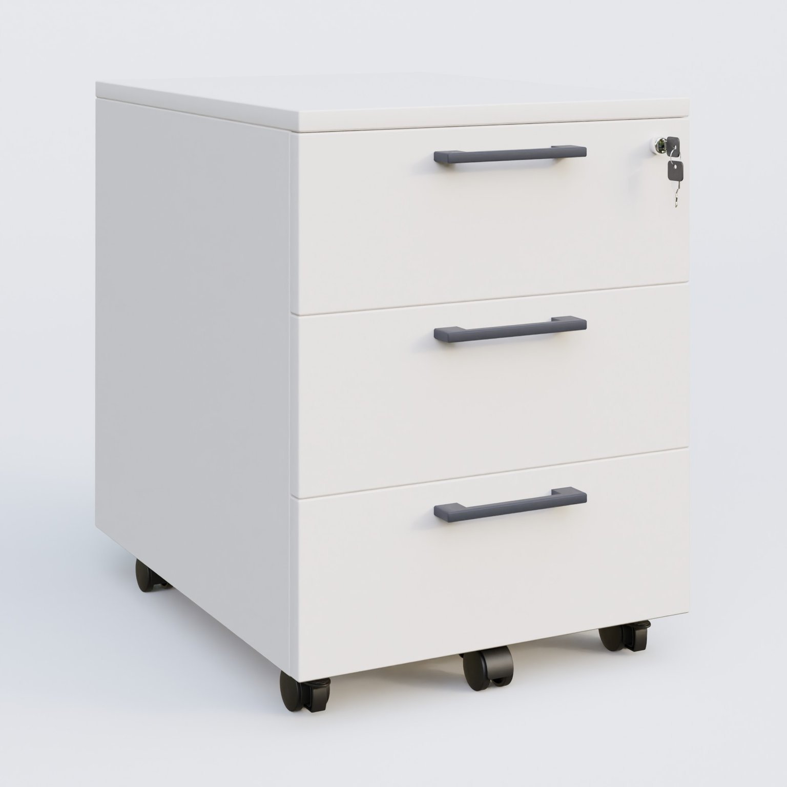 Caisson mobile mélamine 3 tiroirs, hauteur 55 cm. Caisson Blanc et poignets Anthracite.