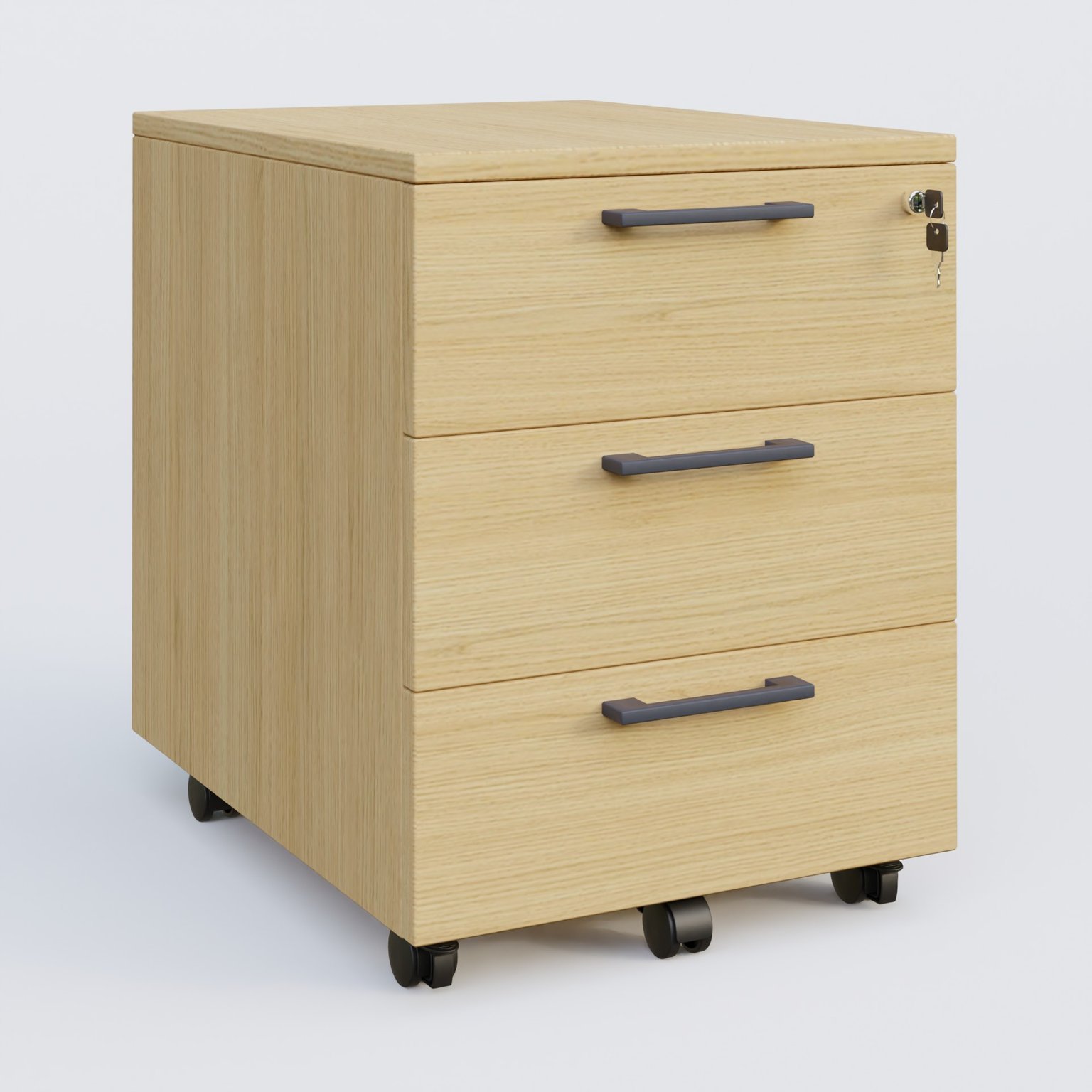 Caisson mobile mélamine 3 tiroirs, hauteur 55 cm. Caisson Chêne clair et poignets Anthracite.