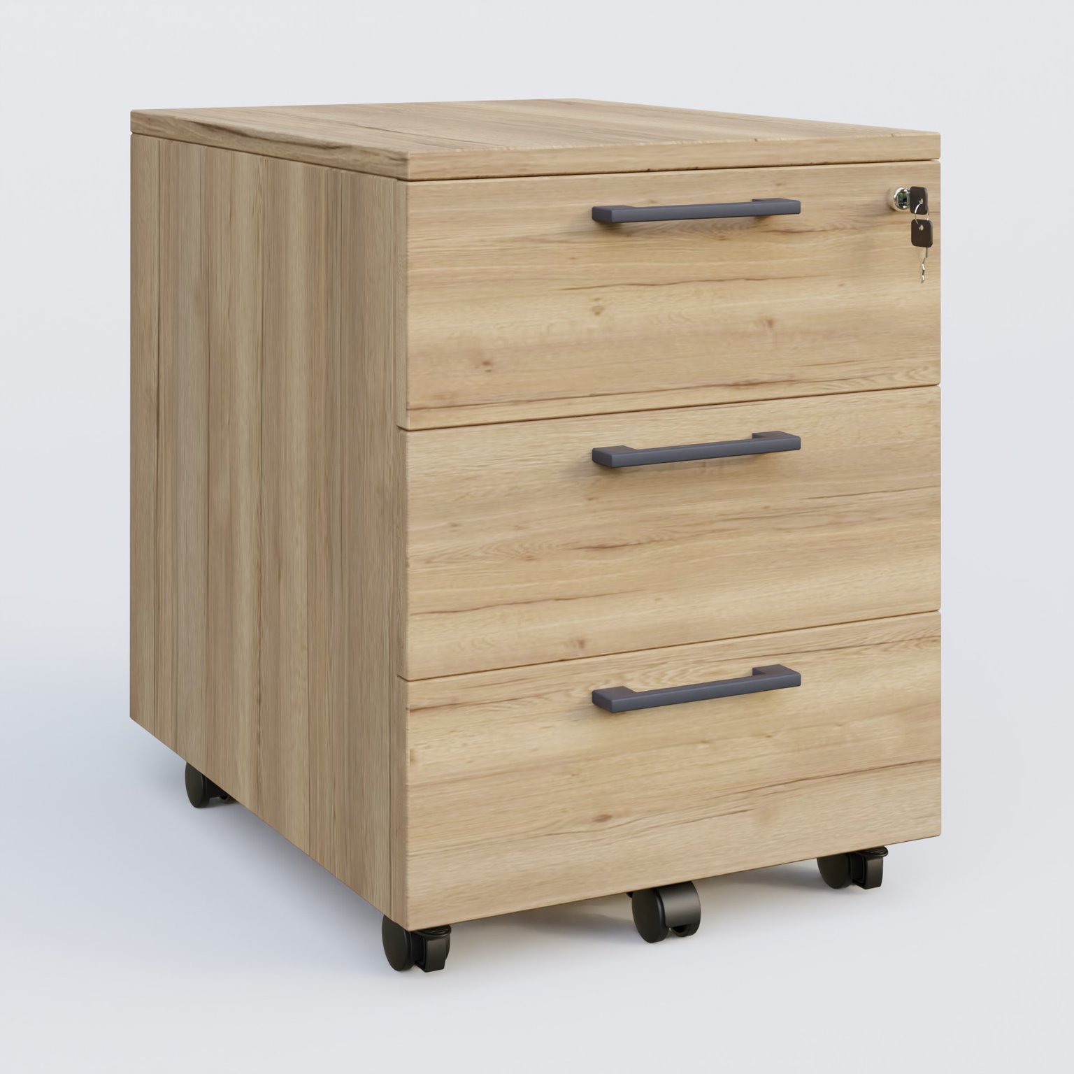Caisson mobile mélamine 3 tiroirs, hauteur 55 cm. Caisson Chêne clair et poignets Anthracite. cheneCe