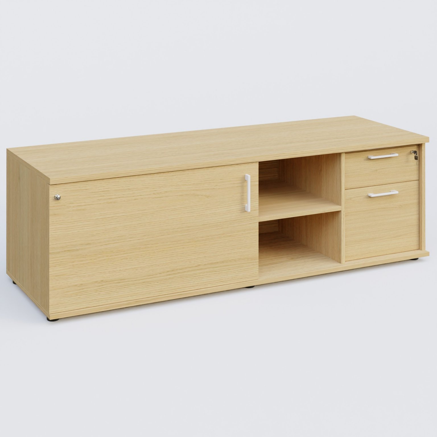 Caisson USE ME avec caisson deux tiroirs à gauche. Caisson Chêne et portes Chêne clair.