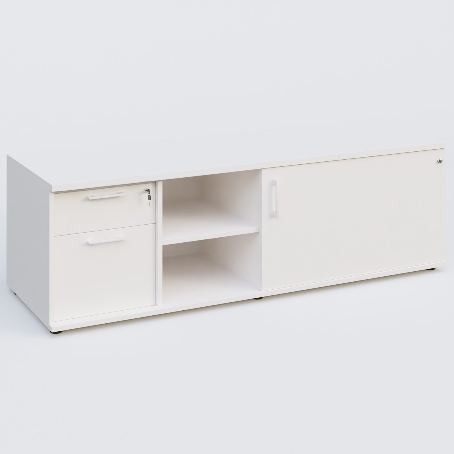 Caisson USE ME avec caisson deux tiroirs, porte à droite. Hauteur 57 cm, profondeur 62 cm et largeur 180 cm.