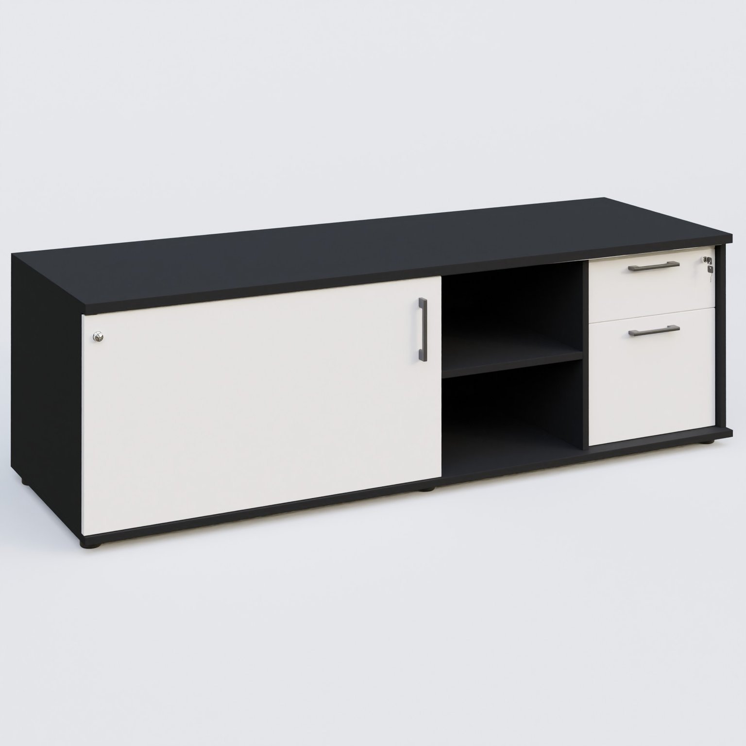 Caisson USE ME avec caisson deux tiroirs, porte à gauche. Caisson Noir et portes Blanc.
