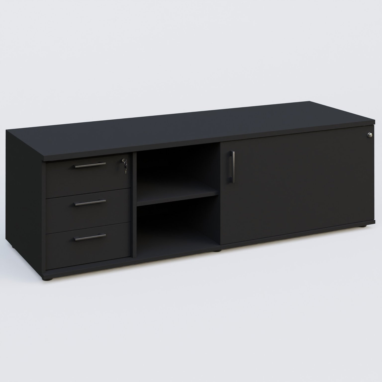Caisson USE ME avec caisson trois tiroirs, porte à droite. Caisson Noir et portes Noir.